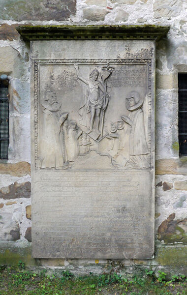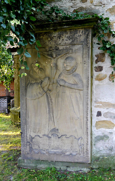 Drei sehr gut erhaltene Grabsteine schmücken die Nordwand der früheren Kniggeschen Gruft. Der älteste zeigt Bartholomäus Rode (Rhodius) mit seiner Ehefrau Catharina, geb. Hastmann. Aus der Widmung zur Stiftung des Grabsteines, die im oberen Teil der Platte eingehauen ist, erfahren wir, dass ihre Kinder den Grabstein setzen ließen. Der mittlere, prachtvollste Grabstein, zeigt unter dem sieghaften, auferstandenen Christus wiederum ein Ehepaar, zusammen mit seinen sieben Kindern. Wie wir der Inschrift entnehmen können, wurde auch dieses Grabmal von den Kindern des Ehepaares errichtet. Es handelt sich um Bartholomäus Rode, ein Sohn und Nachfolger des vorhin genannten Pastors in Leveste, mit seiner ersten Frau Catharina geb. Paxmann. Der dritte, kleinere Grabstein erzählt von einem Herrn Meybruch, der in Leveste 31 Jahre als Gerichtsverwalter tätig war und 1712 verstarb.