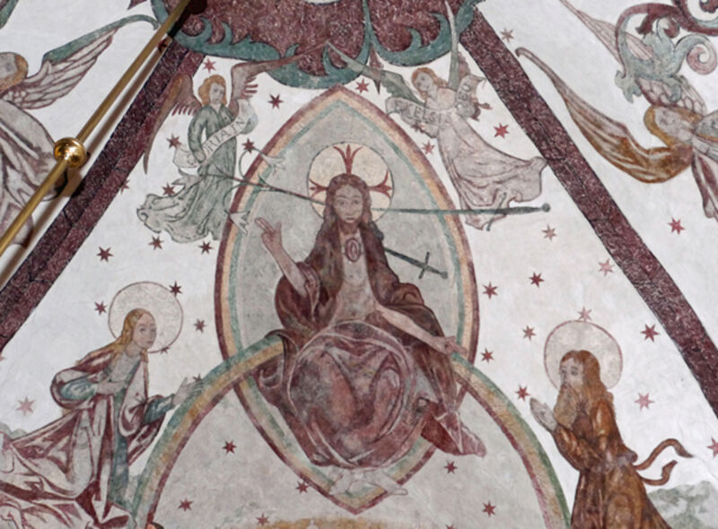 Betritt man durch das Portal das Langhaus der Kirche, hält man einen Augenblick überrascht inne. Wer vermutet schon in dieser kleinen, äußerlich so schlichten Dorfkirche eine solch prachtvolle Ausmalung?