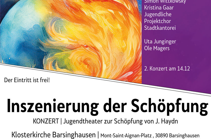 Unter dem Titel perspektiven:schöpfung lädt die Stadtkantorei Barsinghausen zu zwei besonderen Konzertabenden ein, bei denen Auszüge aus dem Oratorium Die Schöpfung von Joseph Haydn im Mittelpunkt ...