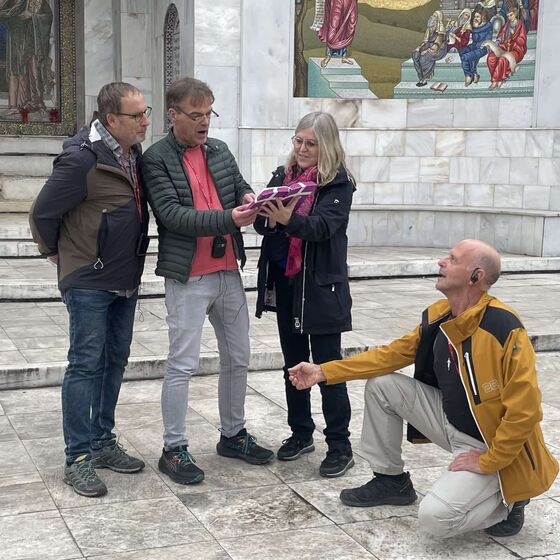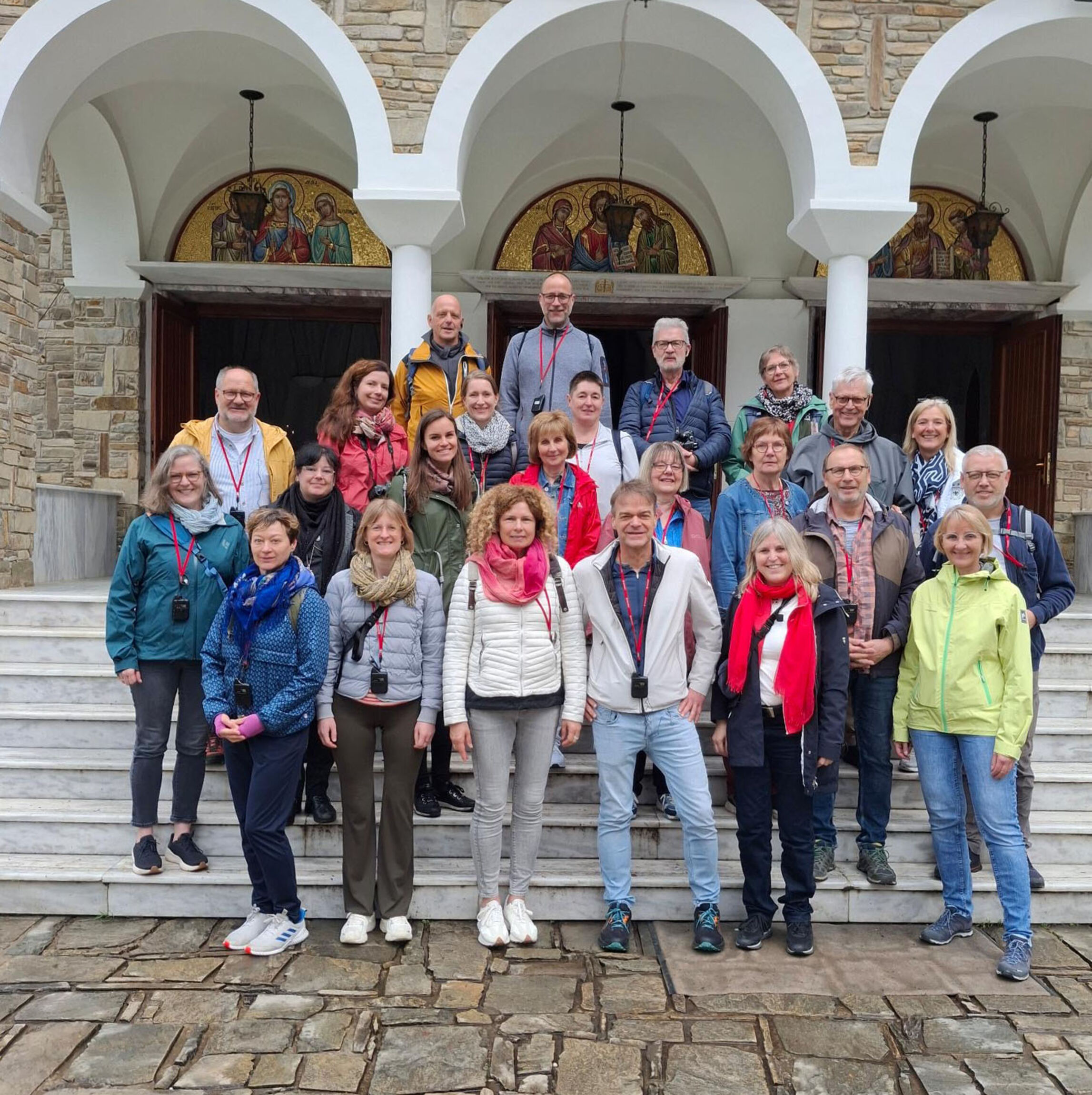 24 Entdeckungslustige haben sich am Sonntag mit der Gesamtkirchengemeinde auf eine Reise begeben. Eine Woche werden sie auf den Spuren des Paulus Neues und Aufregendes entdecken. Gestern startete die Gruppe in Thessaloniki. Tagesziele waren die Taufstelle und Gedenkkirche der heiligen Lydia, der ersten getauften Christin Europas, die Ausgrabungsstätten in Philippi sowie das Löwenmonument von Amphepolis. Paulus ist schon am ersten Tag erlebbar geworden.