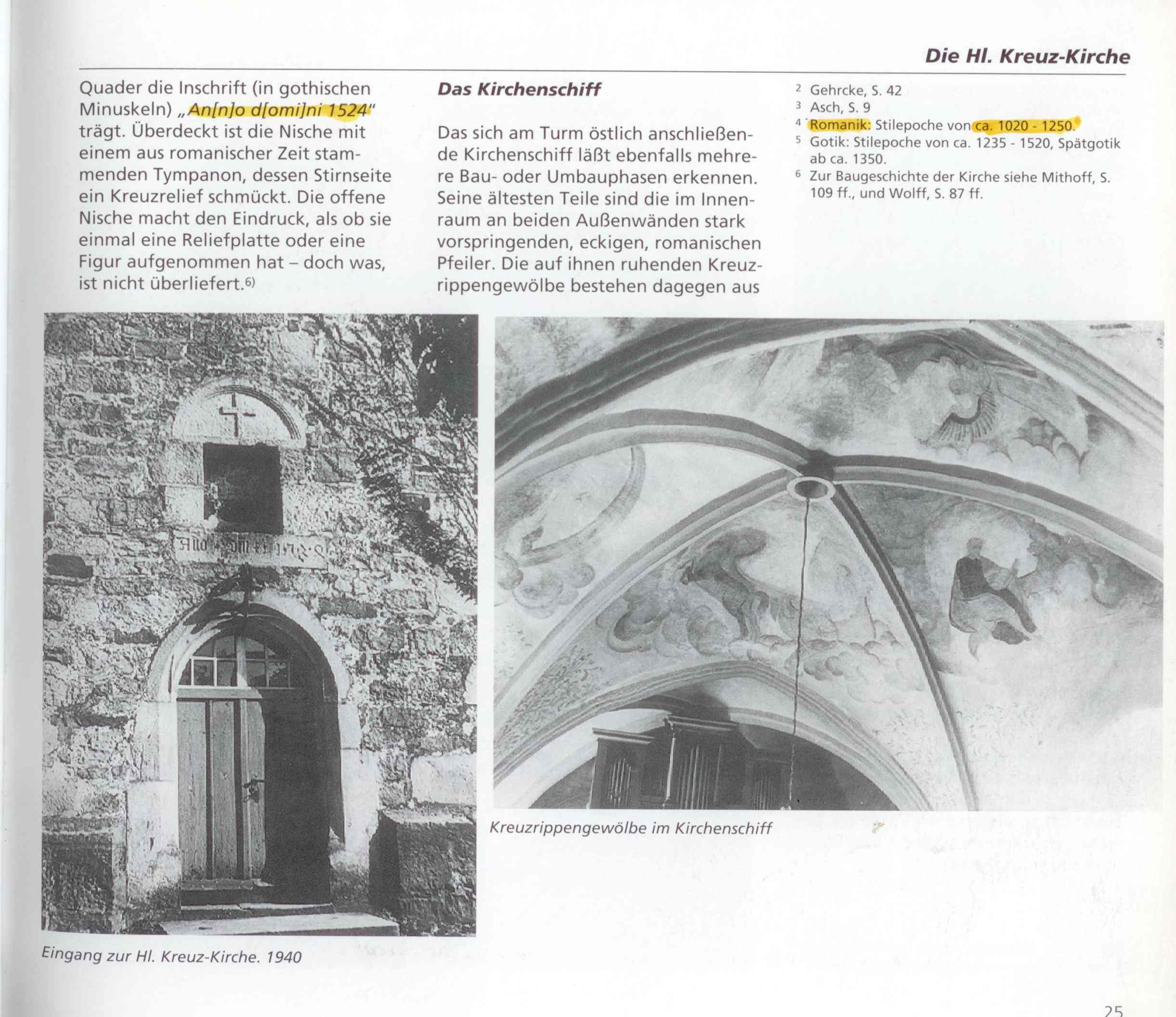 Romanisches Tonnengewölbe im Turmvorraum und kirchenschiffseitige schwerer Rundbogen. Vermutlich in den Jahren 1020 -1250 erbaut.