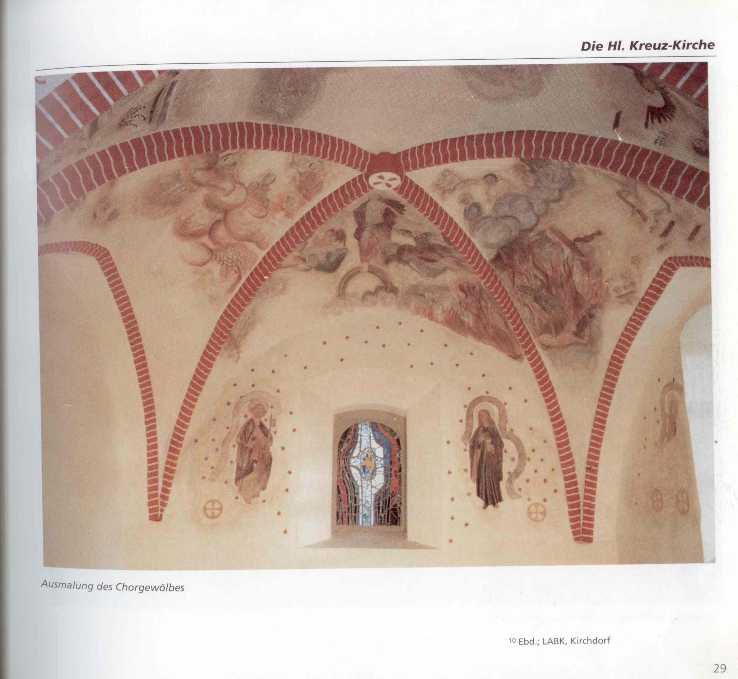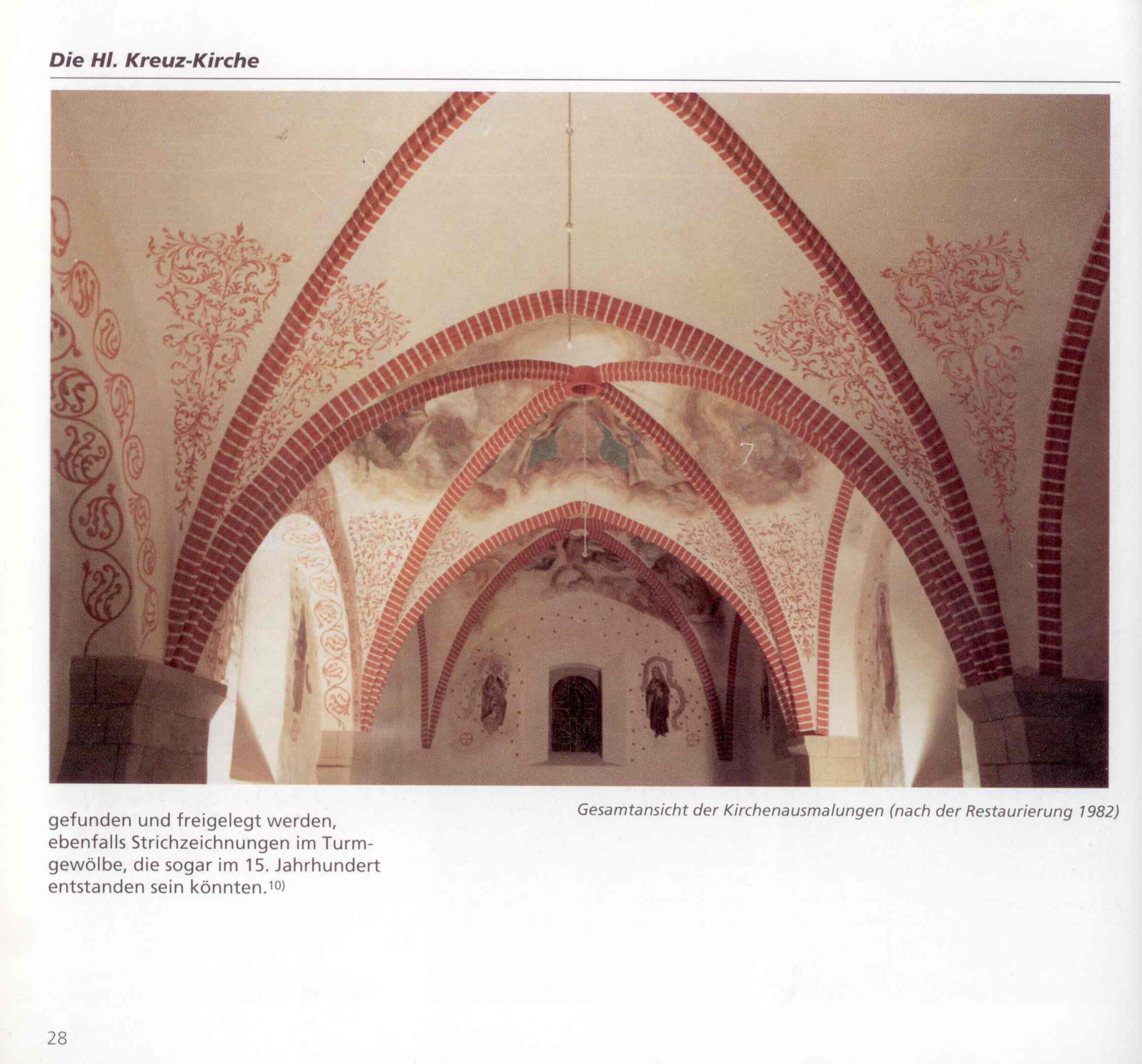 Die wenigen alte Reste der Deckenmalerei wurden 1952 restauriert und zu vollständigen Gemälden ergänzt.