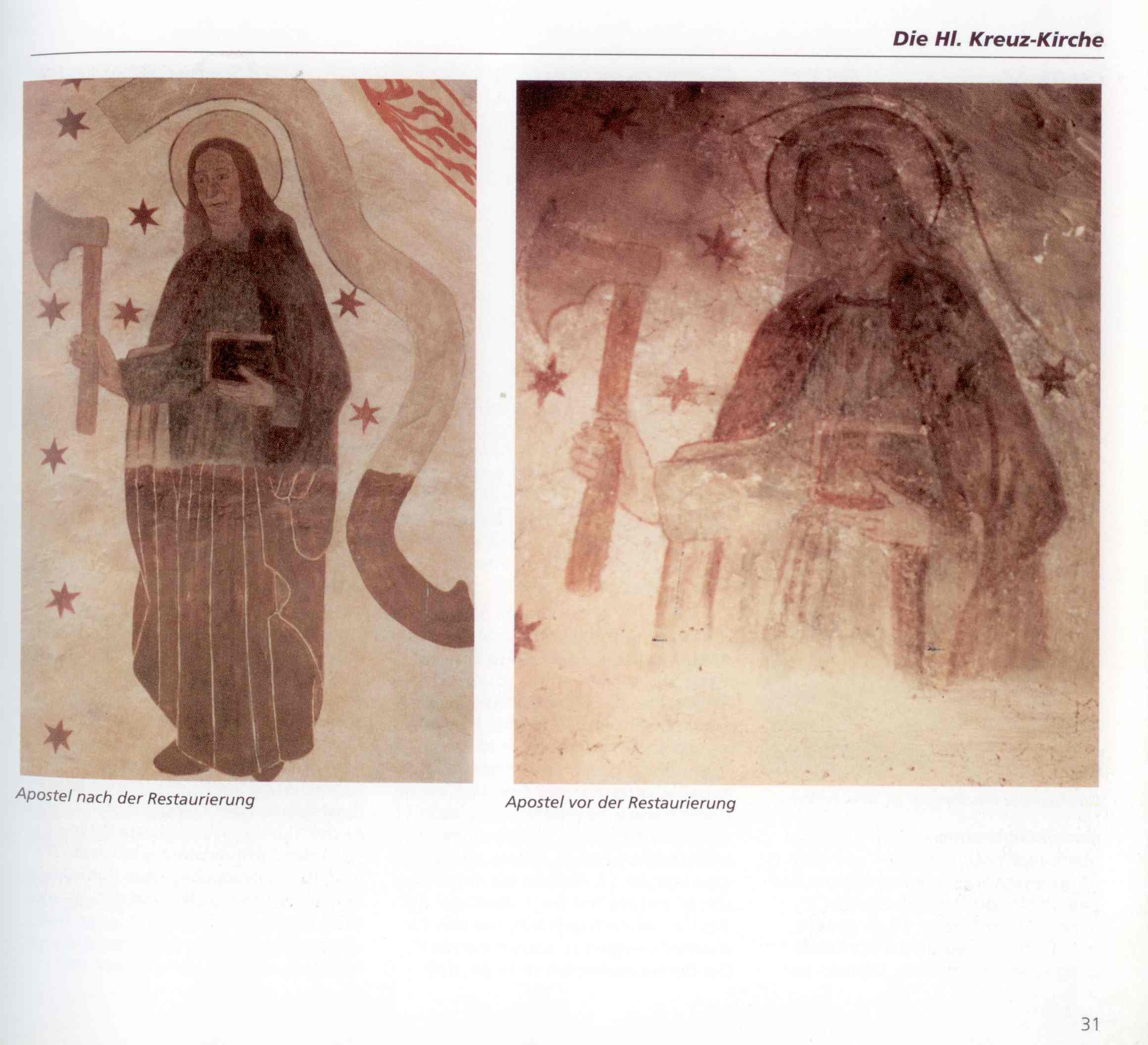 - Spätgotik -. Es handelt sich dabei um Apostelfiguren an den Wänden, sowie breite Ornamentbänder an den Rundbögen.