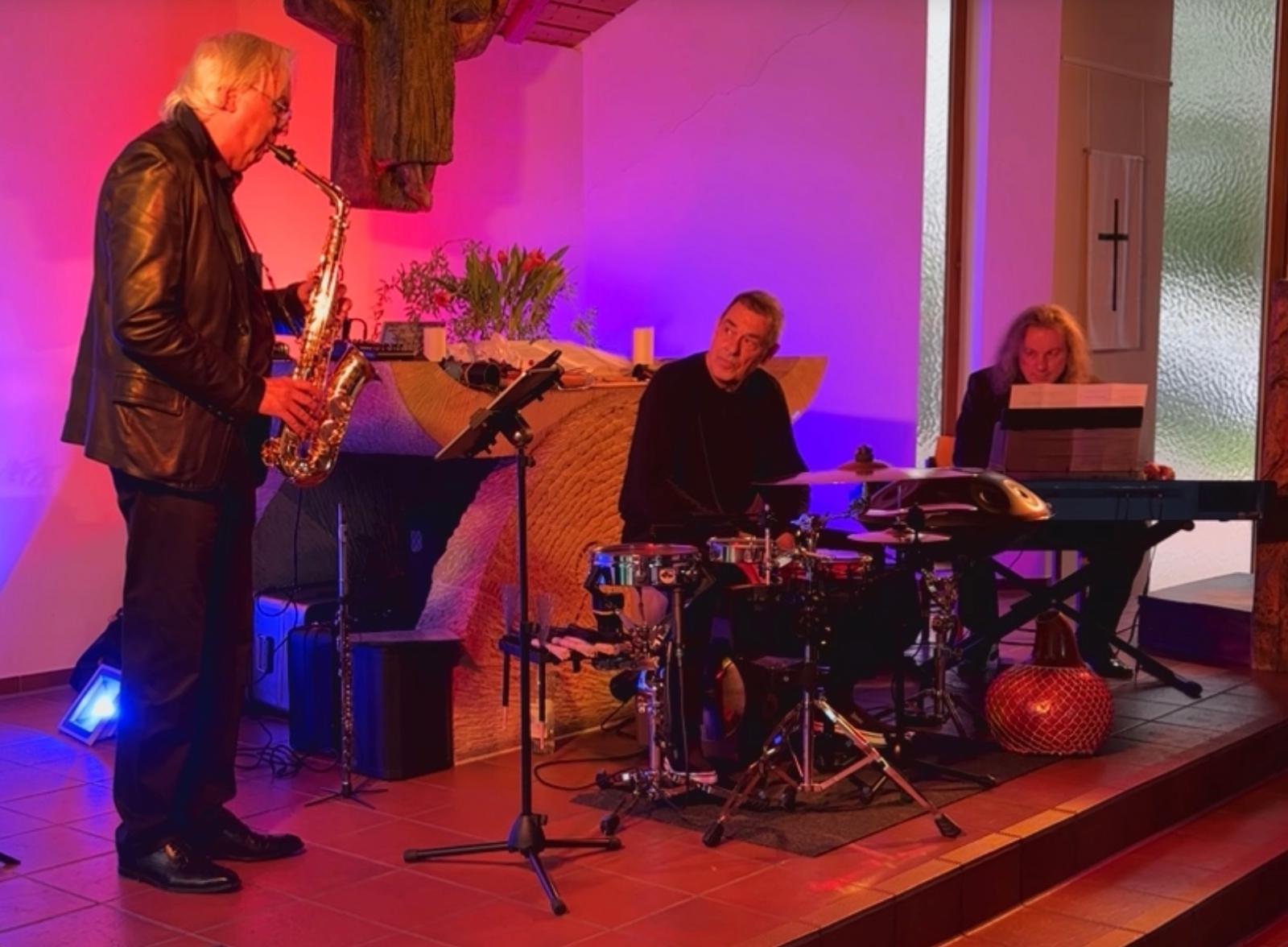 Rolf Schawara, Carsten Tamme und Gunnar Hoffmann sind mittlerweile fest in der Petruskirche verwurzelt. Die Gemeinde kennt den lebendigen Klang von Samba, Salsa, Pop und Jazz, den die drei Musiker mit Percussion, Querflöte und Gitarre präsentieren. Gemeinsam mit Pastorin Kristin Köhler bilden sie ein eingespieltes Team und gestalten einen besonderen Jazzgottesdienst.