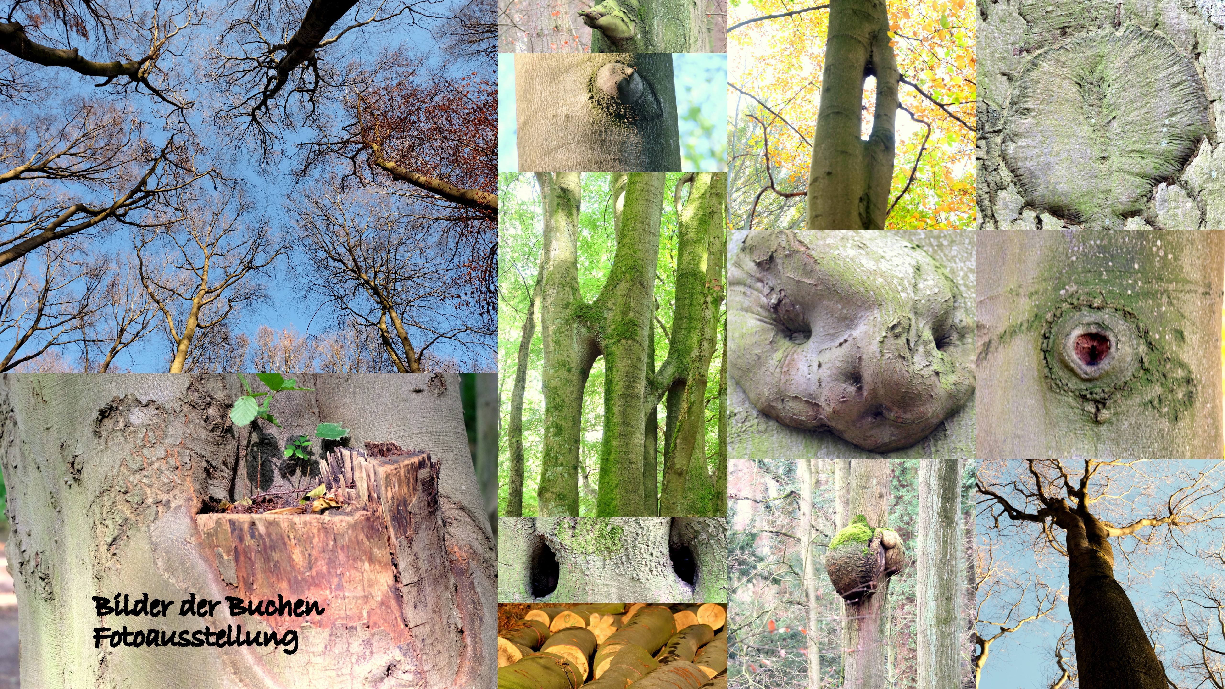 Buchen und was sie uns erzählen. Von Weiten ein glatter Stamm, weit in den Himmel ragend. Doch tragen sie oft Verletzungen, zeigen, wie sie dem Sturm standgehalten haben, kämpfen gegen Wasserknappheit und zeigen, wie sie sich dem entgegenstellen. Zeichnungen an der Rinde, Verwachsungen am Stamm und manchmal eigentümliche Formen und das Zusammenwachsen von einzelnen Stämmen zu einer Baumkrone. Manche Formen lassen der Phantasie weiten Raum.