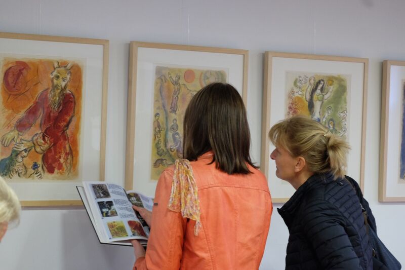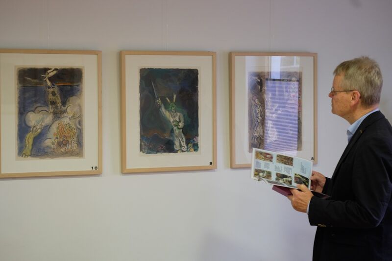 Marc Chagall (1887 bis 1985) schuf unter anderem viele Bilder zur Bibel. Dazu gehört ein Zyklus zum Exodus, Bilder von Propheten oder Frauengestalten der Bibel. 40 seiner Werke, Lithographien und Radierungen aus der Sammlung von Christa Kraemer, sind vom 21. Oktober bis zum 25. November im Gemeindehaus und im Kirchenkreisamt in Ronnenberg zu sehen. Das Team von "Kunst auf dem Kirchenhügel" hat die Werke nach Ronnenberg geholt. Eröffnet wurde die Ausstellung mit dem Titel "Chagall - Bilder zur Bibel" im Anschluss an den Gottesdienst am 21. Oktober. Zur Eröffnung der Ausstellung führte Superintendent i.R. Hermann de Boer mit einem Vortrag in das Chagall-Werk ein.