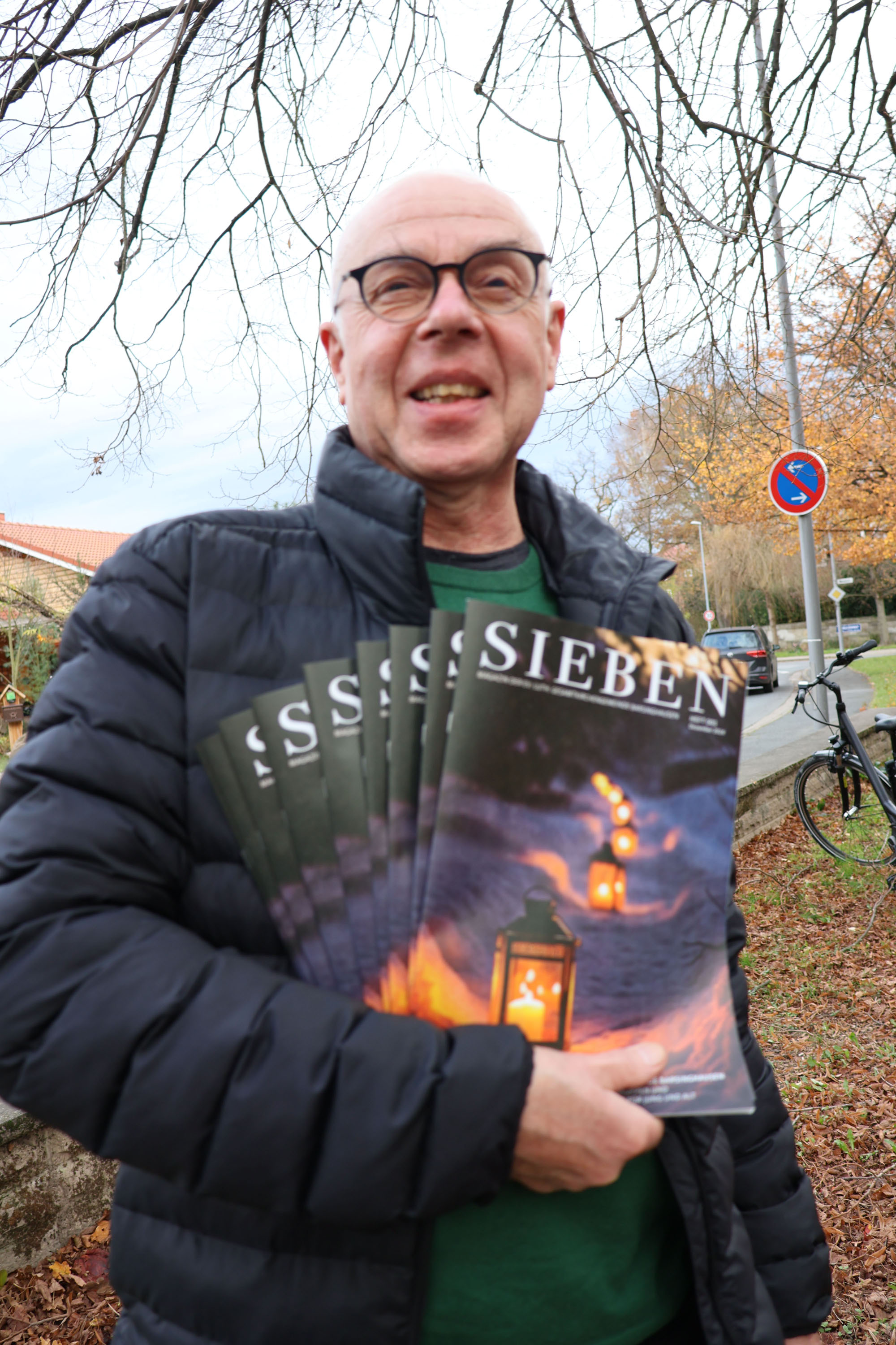Es ist vollbracht! Die erste Ausgabe vom Magazin "Sieben" ist - passend zur Adventszeit und dem Start des neuen Kirchenjahres - erschienen. 15000 druckfrische Exemplare werden nun in den nächsten Tagen von vielen Ehrenamtlichen in den Briefkästen in den sieben Ortskirchengemeinden verteilt. Am Montag, 25. November, hatten Redaktionsmitglieder von "Sieben" die Gelegenheit in Kirchdorf die ersten Eindrücke vom neuen Heft, das die verschiedenen Gemeindebriefe ablöst, zu werfen.
