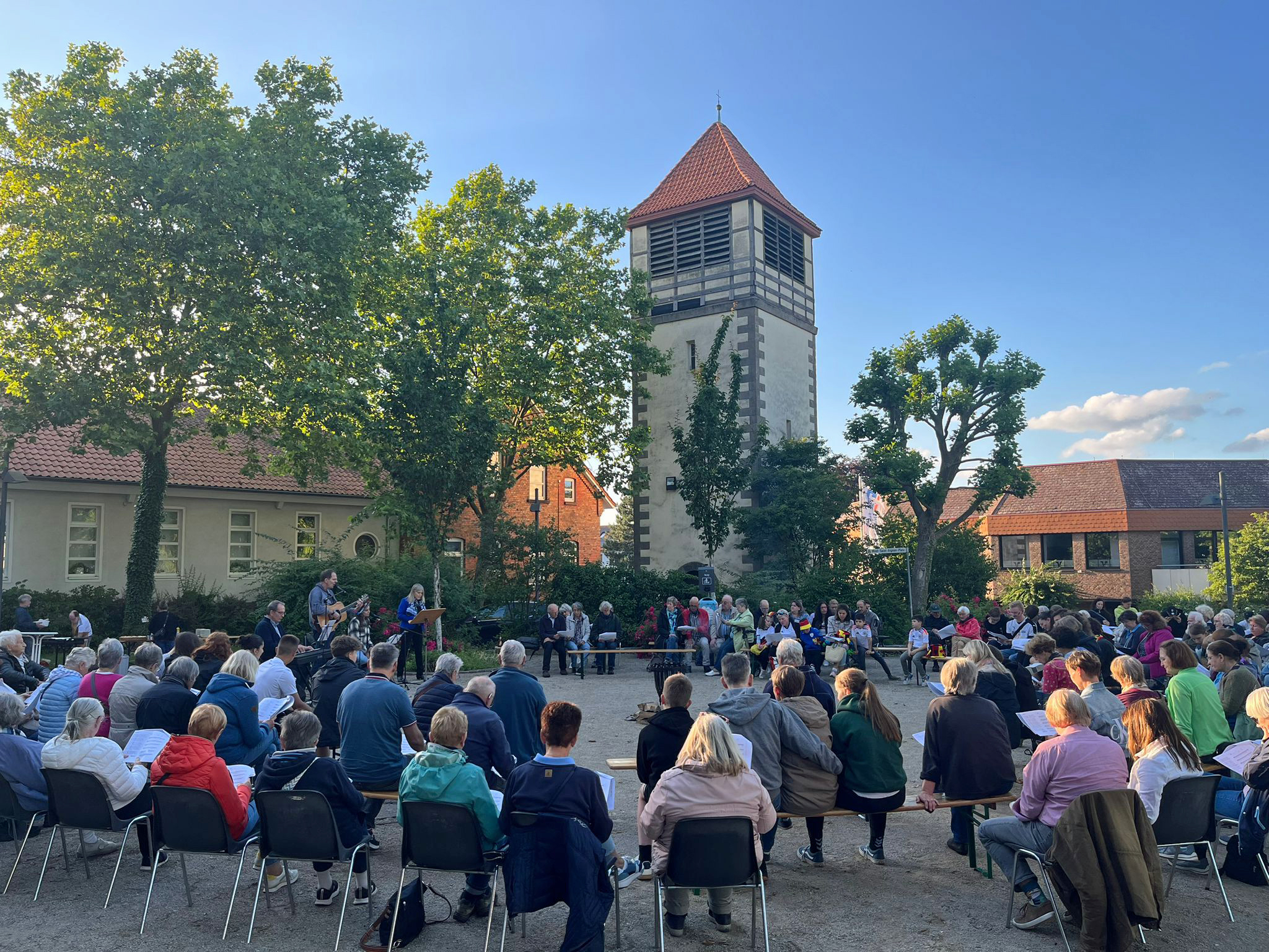 Traditionen wollen gepflegt werden und diese ganz besonders. Als fester Bestandteil des Gemeindelebens der Mariengemeinde Barsinghausen fand am letzten Mittwoch vor den Sommerferien das Singen am Feuer mit anschließendem Reisesegen der Pastorin Uta Junginger und kühlen Getränken, leckeren Snacks und guten Gesprächen statt. So kurz vor den Ferien, dem langersehnten Sommerurlaub, ob weit weg, nah oder zu Hause, wo sich die Termine der Großen und Kleinen häufen, zusammenkommen, noch einmal gemeinsam singen, Evergreens, Schlager, traditionelle Lieder, begleitet von Uli Harms am Piano, Ralf Heiming an der Gitarre und Corinna Moldenhauer als Gesangsverstärkerin der zahlreich erschienenen Jungen und Junggebliebenen. Das Wetter meinte es gut, die Sonne kam raus und alle Beteiligten genossen diesen schönen Abend. Nach dem Reisesegen blieb noch Zeit für ein geselliges Beisammensein vor dem Gemeindehaus, bevor aufgebrochen wurde, um in die schönste Zeit des Jahres zu starten.