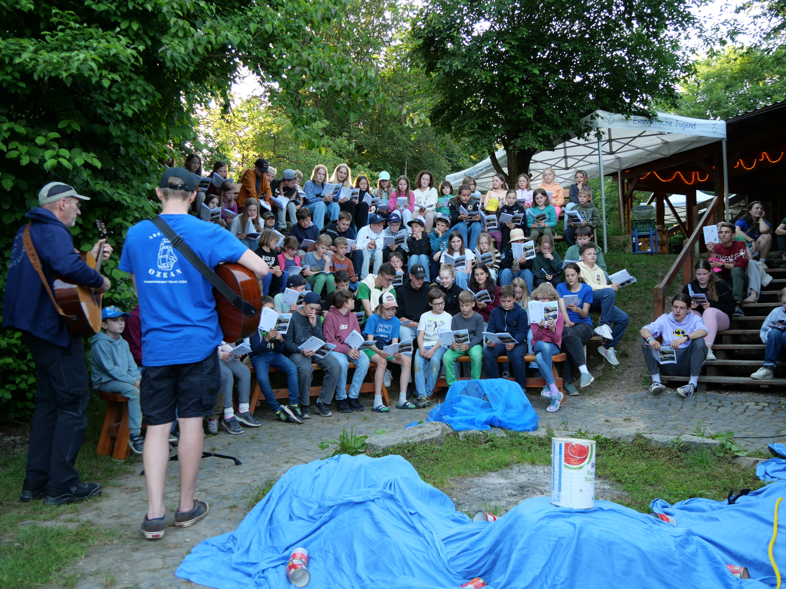 Die 30 Teamenden der Evangelischen Jugend reisten bereits zwei Tage unter der Leitung der Diakone Martin Wulf-Wagner und Katrin Wolter vor den Kindern an, um das Camp einzurichten, zu dekorieren und sich auf ihre Aufgaben vorzubereiten. Umso größer war die Vorfreude, als die Reisebusse auf das Camp gefahren kamen und die Kinder mit strahlenden Gesichtern begrüßt wurden.