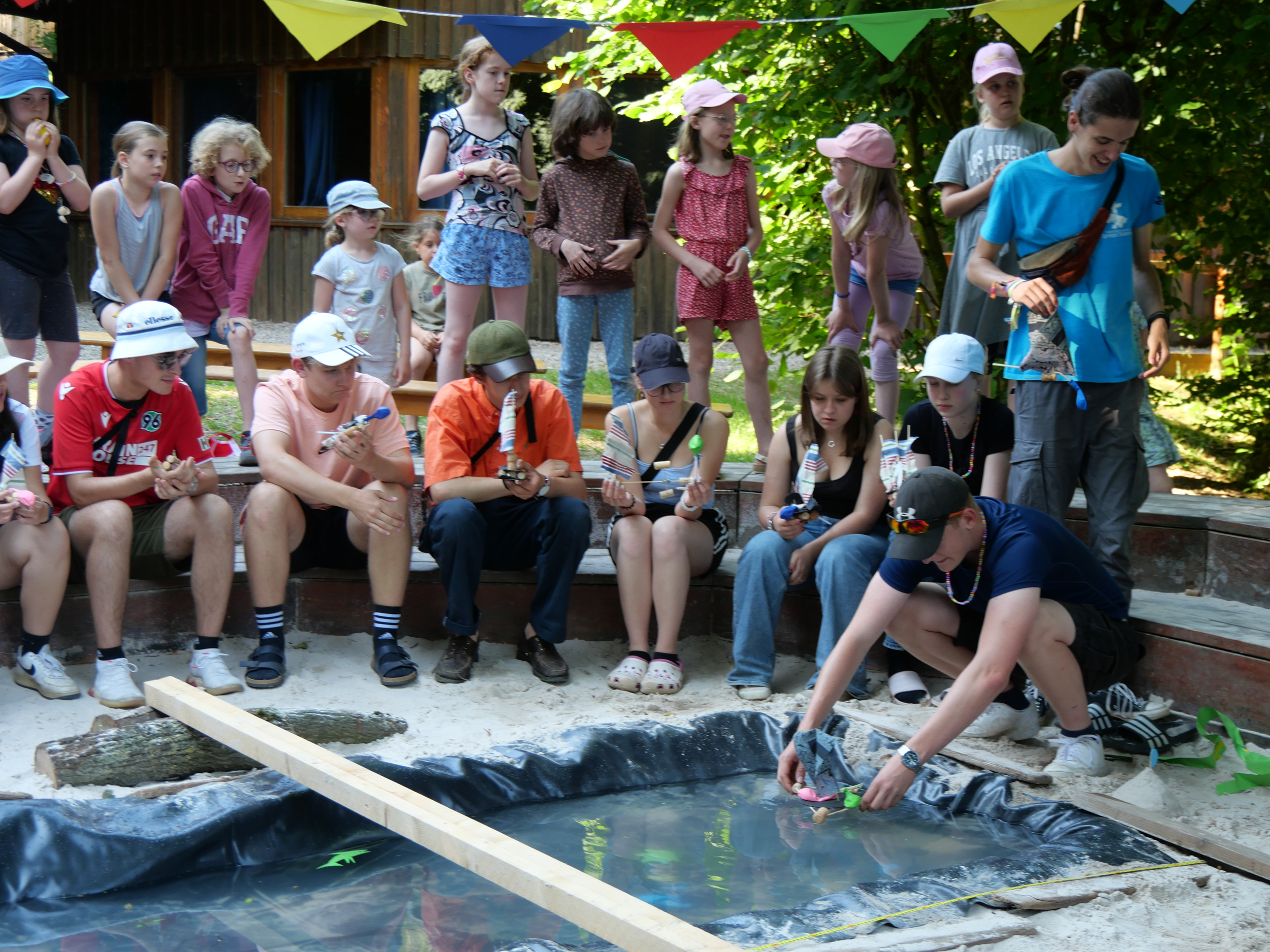 „Mein Highlight war definitiv die Bootsregatta“ teilt das Zelt 5 voller Freude mit. Am Vormittag wurde das Wasserbecken gebaut und dekoriert. Daraufhin stellen die Matrosin Madita und Taucher Thorsten die Regeln vor und geben den Startschuss. Innerhalb von 20 Minuten werden Boote mit unbekannten Materialien konstruiert und in der feierlichen Regatta sammeln die Zelte Punkte in Kategorien wie: Aussehen, Schwimmfähigkeit und Windbeständigkeit. Zoe Budde, ehrenamtliche Mitarbeiterin aus dem Leitungsteam der Freizeit sagt: „Die Regatta war für alle ein Erfolg, die Kinder hatten Spaß beim Bauen und Testen ihrer Boote und die Gruppenleiter*innen haben voller Enthusiasmus ihre Kinder angefeuert.“ Den Abschluss der Freizeit bildete eine große Unterwasser-Party, bei der die beliebtesten Uslar-Songs gefeiert wurden. Am Tag darauf kamen alle im Gottesdienst nochmal zur Ruhe und hatten Zeit, über all die Highlights und Erlebnisse nachzudenken.