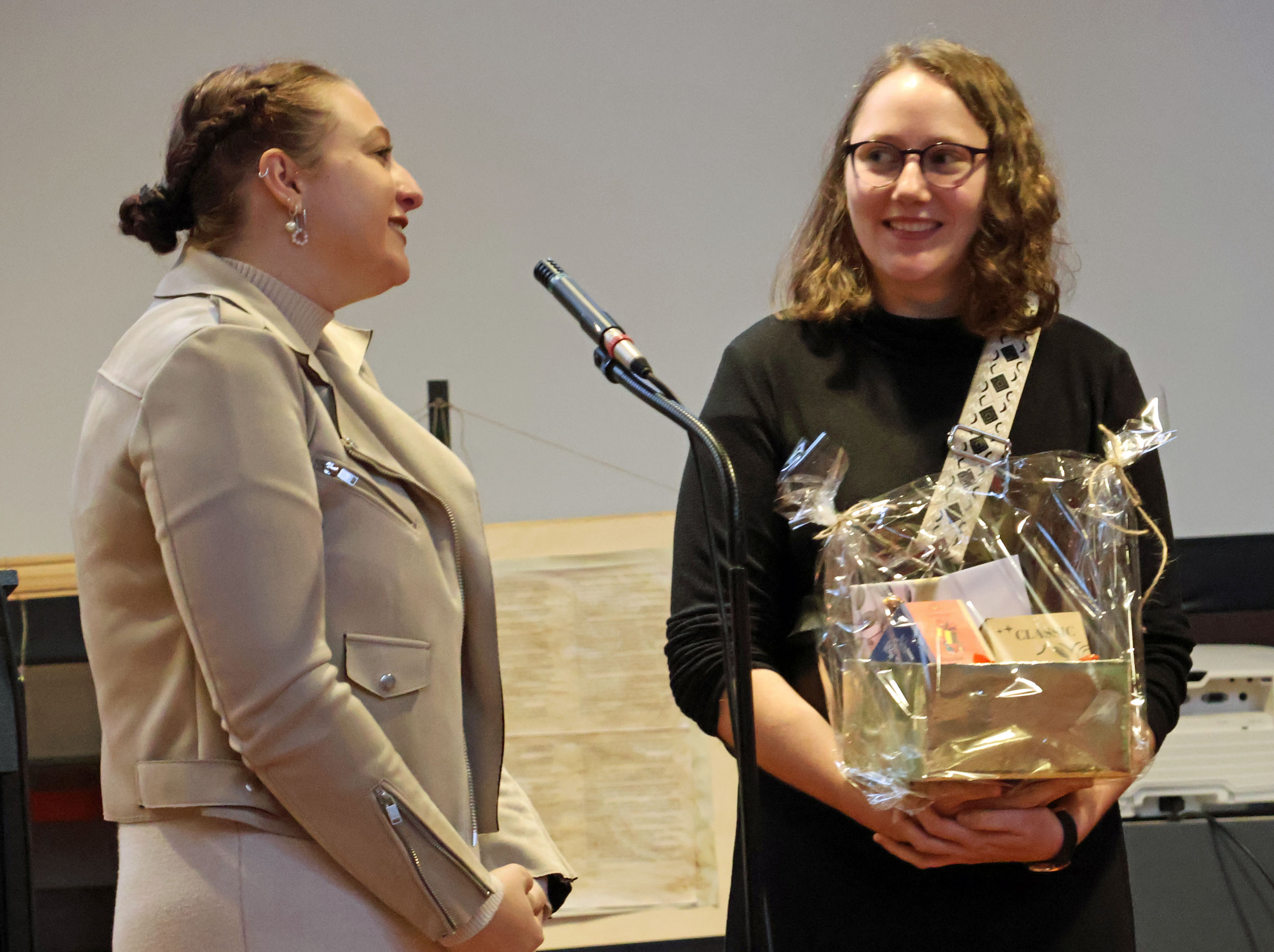 Grußworte sprachen die Kolleginnen und Kollegen der Berufsgruppe und auch aus der Region Ronnenberg, außerdem die Vorsitzenden der Ortskirchenvorstände Aileen Bensch für die Versöhnungskirchengemeinde und Henrike Vetter für die Osterkapellengemeinde Linderte. Martin Wulf-Wagner, Diakon aus der Region Ronnenberg, freute sich, dass Katja Strelow weiterhin im Kirchenkreis mit ihrer Familie wohnen werde. Er lernte Katja Strelow bereits als Kind kennen, das an einer der Kinderfreizeiten teilnahm, die er leitet. Später habe er auch die ersten beruflichen Schritte Katja Strelows mit begleitet. "Katja - du bist ein Segen" - dies ließen die Kolleginnen und Kollegen der Region auf den Kaffee-Thermobecher drucken, den Katja Strelow nun mit in das neue Büro in Laatzen nehmen kann. „Du wirst mit deiner Fröhlichkeit und Kollegialität eine große Lücke hinterlassen. Du warst eine Kollegin, die immer viel Glitzer mitgebracht hat. Diesen Glitzer werden wir noch lange sehen und uns an dich erinnern“, meinte Diakonin Frederike Flathmann, die selbst ein Fläschchen Glitzer zum sprühen mitbrachte.