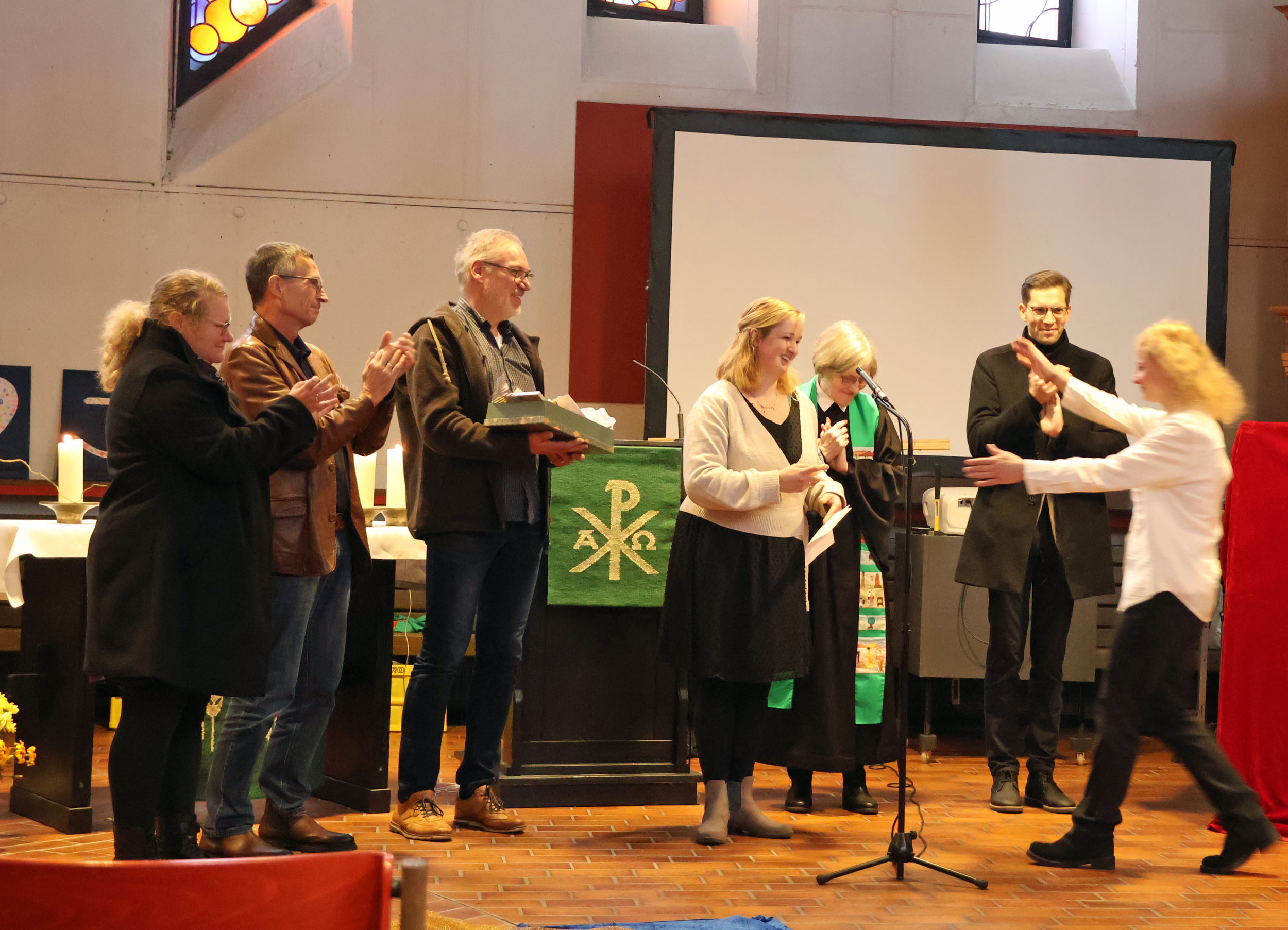 Am Freitag, 1. November beginnt für Diakonin Katja Strelow ein neuer beruflicher Abschnitt: Sie wird Kirchenkreissozialarbeiterin im Kirchenkreis Laatzen-Springe. An ihrem letzten Arbeitstag im Kirchenkreis Ronnenberg wurde sie im Familiengottesdienst am Reformationstag in der Versöhnungskirche in Weetzen verabschiedet. Superintendentin Antje Marklein würdigte das fünfjährige Wirken der Diakonin in der Region Ronnenberg in verschiedenen Aufgaben, unter anderem auch als Vakanzvertreterin für Pastorin Rebecca Brückner und in der Gestaltung vieler regionaler Familiengottesdienste. Diese habe sie, wie auch heute wieder erlebt, sehr detailreich und mit viel Freude vorbereitet und mit den Gemeinden gefeiert. Ein besonderes Talent der Diakonin sei dies gewesen. "Sie strahlen Freude und Hoffnung aus. Unter den Kolleg*innen, in den Teams, als Gottesdienstleitende – meist sehen wir Sie strahlend – bei aller Aufregung oder Anspannung, die ja auch da ist", sagte die Superintendentin. Im Kreis von Hauptamtlichen, aber auch mit Anwesenheit der Kinder im Gottesdienst, darunter auch der dreijährigen Tochter Theresa und der Konfis wurde Katja Strelow anschließend für ihren weiteren Weg gesegnet.