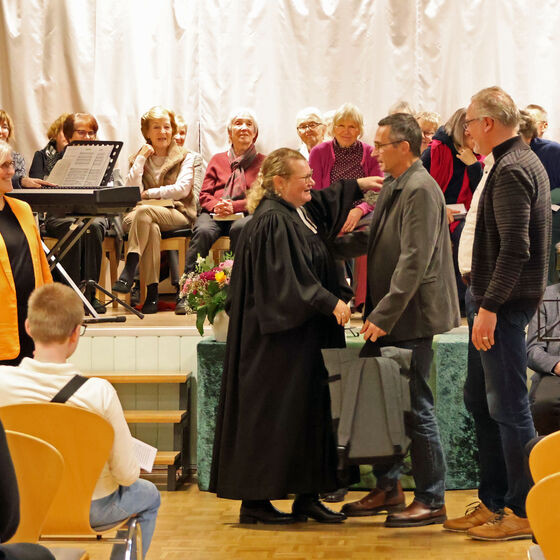 Im Gottesdienst wurde auch Henrik Menge verabschiedet, der auch nach Ende der Amtszeit des alten Kirchenvorstandes zumindest noch bis September dabeiblieb. Pastorin Marion Klies dankte ihm für sein vielfältiges Engagement in der Gemeinde. Im Kirchenvorstand hatte er vor allem den Blick auf die Finanzen und Baumaßnahmen. Aber auch im Familienzentrum mit Vater-Kind-Aktionen oder bei Einsätzen der Ökumenischen Gartenarbeit war Henrik Menge aktiv dabei. Derzeit gibt es in der Gemeinde einen kommissarischen Kirchenvorstand der aus der Superintendentin, Burkhard Manke aus dem Kirchenkreisvorstand und den beiden Pastorinnen besteht.