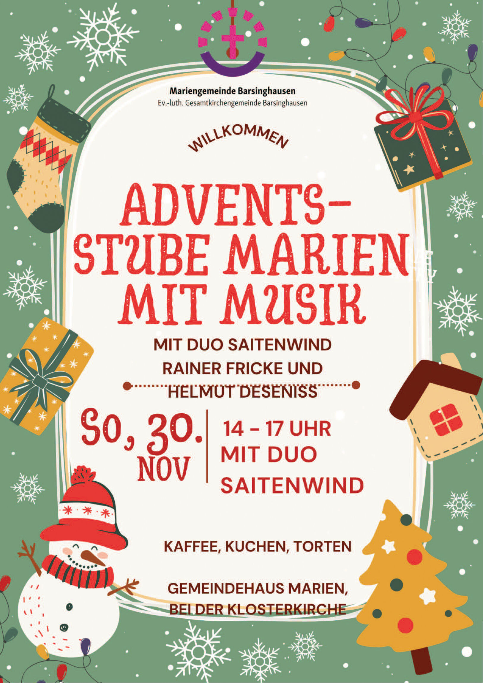 Festlicher Adventsgottesdienst mit Liedern aus dem Weihnachtsoratorium in der Klosterkirche und musikalische Adventsstube mit Duo Saitenwind