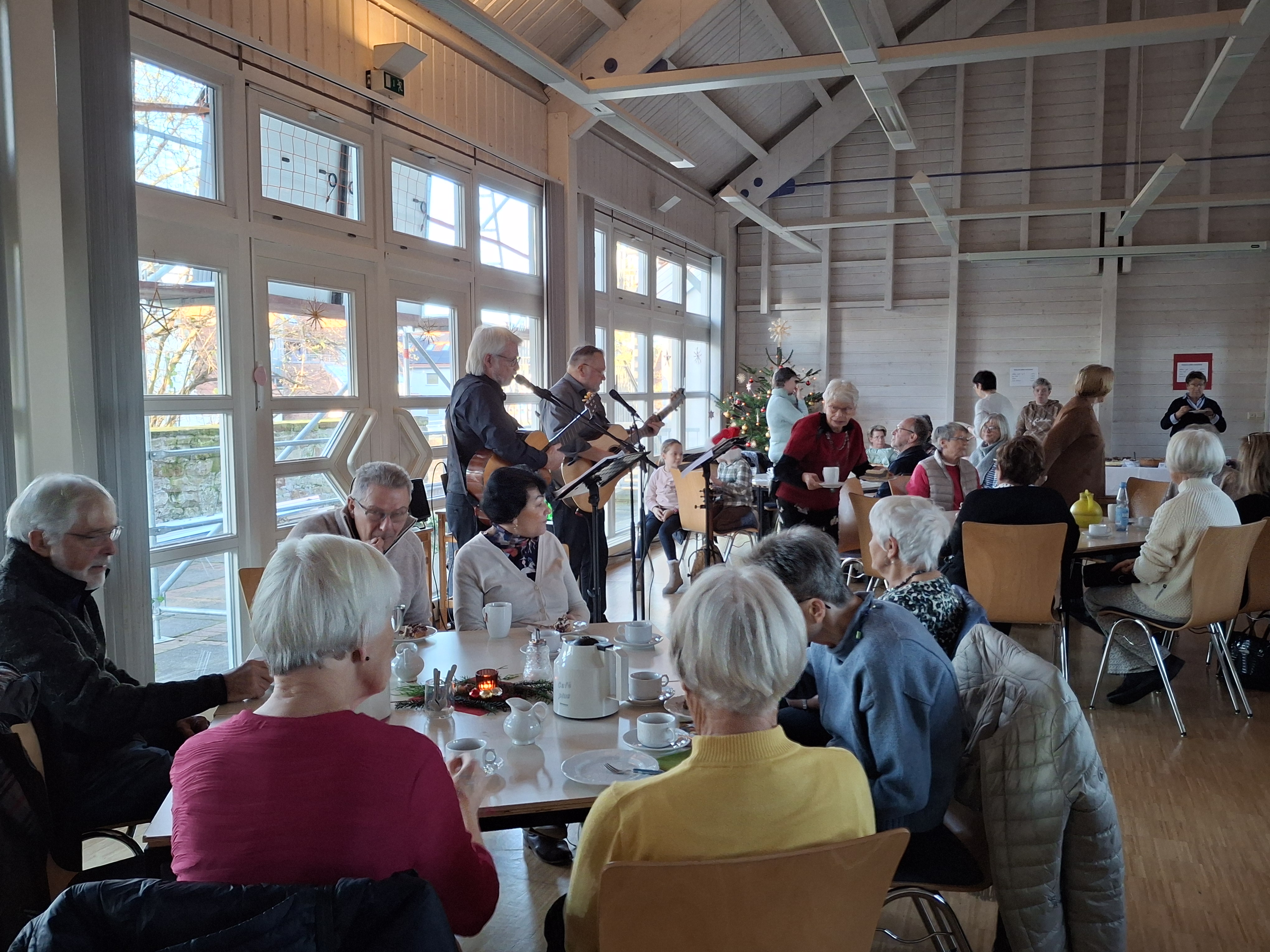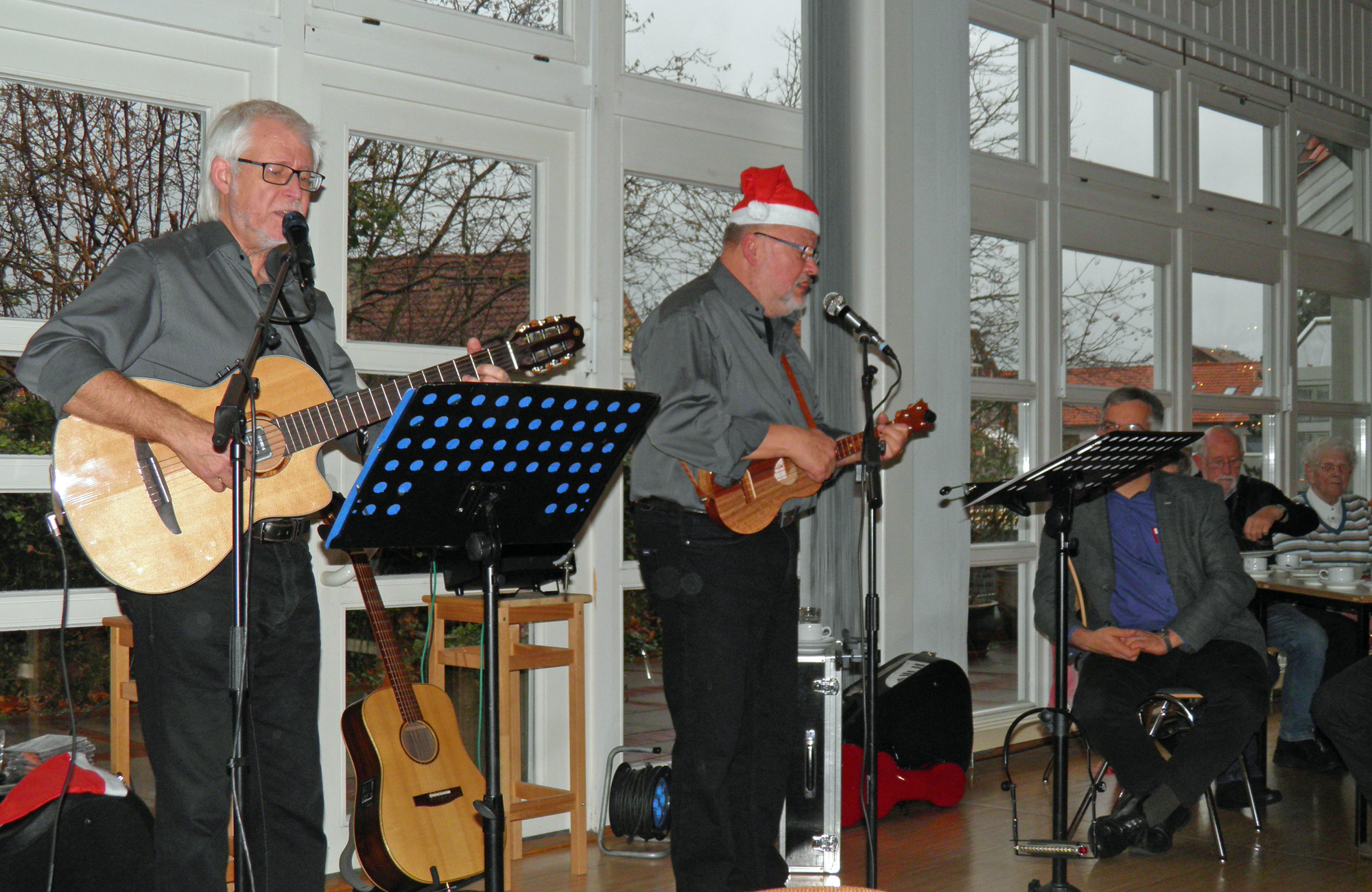 Ab 14.30 Uhr spielt das Duo Saitenwind mit Rainer Fricke (Gesang und Gitarre) und Helmut Deseniß (Gesang, Gitarre, Ukulele) launige Musik mit Winterliedern auf Platt.