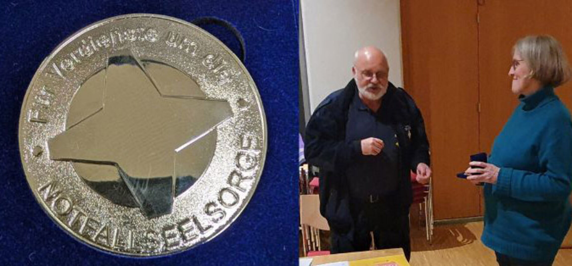 Am 6. Nov. 2025 wurde anlässlich der jährlichen Besprechung der Notfallseelsorge im Kirchenkreis Ronnenberg mit dem Rettungsdienst, der Feuerwehr und der Polizei Frau Antje Marklein mit der Goldenen Verdienstmedallie der Notfallseelsorge ausgezeichnet. In seinen Lobesworten hob der NFS-Sprengelbeauftragte Matthias Stalmann die Verdienste von Antje Marklein hervor, der nicht nur in ihrer Aufgabe als Superintendentin die Belange der Notfallseelsorge stets eine Herzensangelegenheit gewesen waren, sondern seit vielen Jahren selbst unzählige Bereitschaftsdienste und Einsätze übernommen hatte. Mit einem herzlichen Dank und großem Applaus wurde Antje Marklein aus dem Kreise der Notfallseelsorge des KK Ronnenberg verabschiedet, da sie mit Ablauf des Monats in den Ruhestand tritt und an die Küste ziehen wird. Aber auch dort plant Antje Marklein in der NFS mitzuwirken. Herzlichen Dank, alles Gute und Gottes Segen für Sie, Antje Marklein!