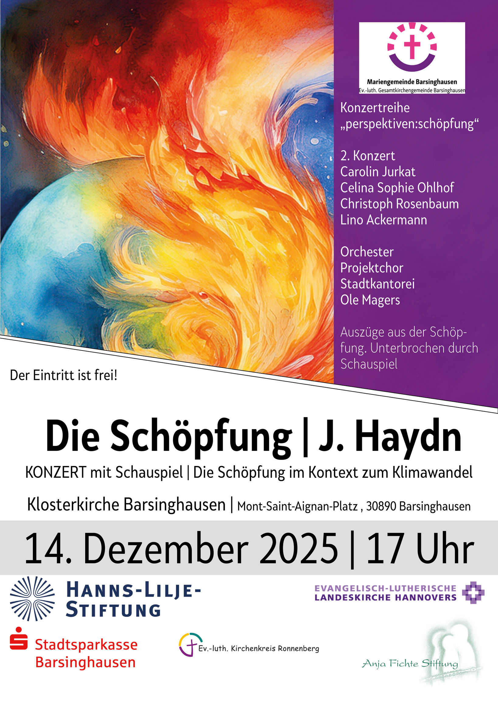 "Die Schöpfung“ nach Joseph Haydn – Konzert mit Schauspiel im Kontext des Klimawandels: Ein Abend, der musikalische Traditionen mit aktuellen Fragestellungen verbindet: Am Sonntag, 14. Dezember 2025, um 17 Uhr lädt das Projekt „perspektiven:schöpfung“ zu seinem zweiten Konzert in die Klosterkirche Barsinghausen ein. Unter der Leitung von Ole Magers entsteht ein Format, das Haydns Klangsprache, szenische Impulse und Gegenwartsbezüge in einen konzentrierten Dialog bringt.