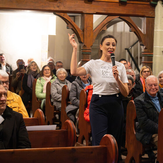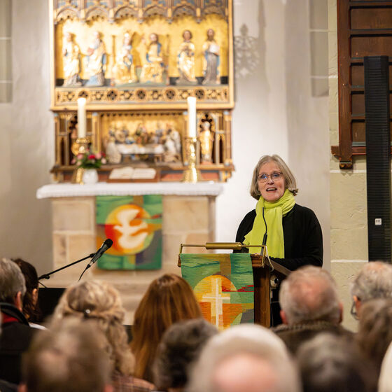 In ihrer Begrüßung der rund 120 Gäste in der Michaeliskirche in Ronnenberg riss zuvor Antje Marklein aktuelle Themen an, die den Kirchenkreis beschäftigen. Ein Thema sei die anstehende Gebäudepriorisierung. „Wir werden uns künftig - bei aller Wertschätzung für jedes Gebäude -, beschränken müssen und verstärkt Umnutzungen andenken. Der Klimaschutz muss immer mitgedacht werden, bei Gebäuden, bei Landverpachtung wie bei Mobilität, beim Heizen und beim Stromverbrauch“, erklärte sie. Mit Blick auf die Krisen der Welt und politische Stimmungen meinte sie : "Viele Menschen sind dünnhäutiger geworden angesichts der großen Krisen, Gaza und Ukraine, um nur die beiden zu nennen. Im politischen Diskurs der Parteien fallen Toleranzgrenzen, Schamgrenzen, und einfache Benimmregeln auch, und nicht nur in den sozialen Medien ist das jeden Tag zu verfolgen. Respektlosigkeit und persönliche Angriffe gehören zum politischen Alltagsgeschäft, und die alte und kostbare Unterscheidung zwischen einem Diskurs in der Sache und persönlichen Angriffen scheint oft nicht mehr zu gelten."