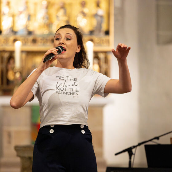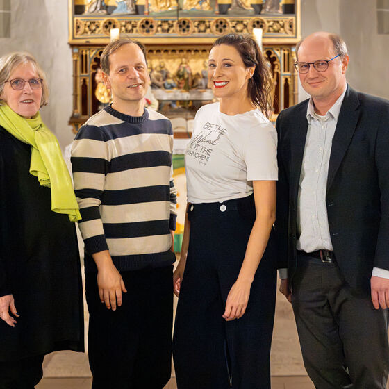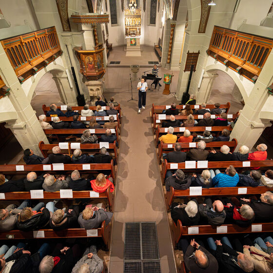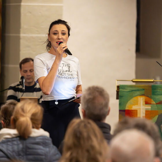 Gesellschaftliche Kursbestimmungen prägen die Kirchenkreisempfänge am Abend vor dem Reformationsempfang. In diesem Jahr in besonderer Art durch die Entertainerin, Theologin und Autorin Annie Heger und den Musiker Jan Simowitsch. Bewusst habe sich der Kirchenkreis - so Superintendentin Antje Marklein in ihrer Begrüßung - dazu entschieden, einen kabarettistischen Blick auf die aktuelle Lage von beiden werfen zu lassen - passend zu Annie Hegers Buchs "Sei der Wind, nicht das Fähnchen".
