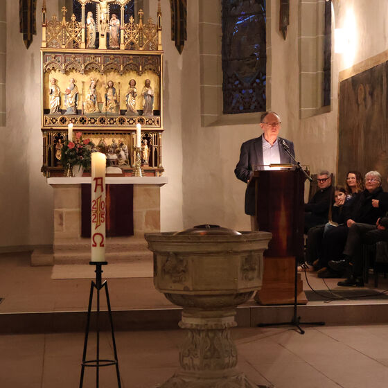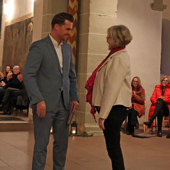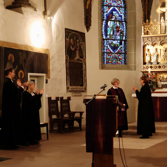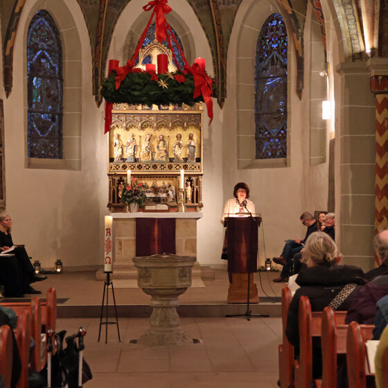 Antje Marklein predigte ein letztes Mal in der Michaeliskirche über die Hoffnungen im Advent - auch im Angesicht von Unfrieden und Nöten. "Mitten im tiefsten Tal können sich Menschen aufrichten. Deshalb möchte ich Advent feiern, vertrauen und hoffen, dass am Ende alles gut wird. Dass es Trost gibt, wo Menschen traurig sind, weil sich so viele Hoffnungen noch nicht erfüllt haben. Denn die Botschaft für Frieden und Gerechtigkeit, die Worte Jesu, werden nicht vergehen", sagte sie. Folgend aus dem Brot für die Welt-Motto "Schreib die Welt nicht ab - schreib sie um" schlug sie den Bogen zur Kirche. "Schreibt die Kirche nicht ab, schreibt sie um. Mutig und beherzt gehen dann Gott und die Menschen Hand in Hand".