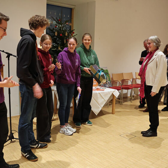 Beim anschließenden Empfang im Gemeindehaus verabschiedeten sich viele Gäste mit persönlichen Worten von Antje Marklein. Pfarrer Johannes Lim und Diakon Dirk Kroll hoben in ihrem Grußwort die gute ökumenische Zusammenarbeit, zum Beispiel bei Tauffesten zu Pfingsten, hervor. Eine Ehrenmitgliedschaft in der Evangelischen Jugend in Ronnenberg überreichte der Kirchenkreisjugendkonvent – auch als Dank für die vielen Reisesegen, die Antje Marklein zu Beginn der Sommerfreizeiten spendete. Joachim Richter, Leiter des Kirchenkreisamtes, brachte es auf den Punkt: „Sie waren eine tolle Chefin. Sachlich, mit Empathie, präsent und teilnehmend, eine Vertraute“. Die erlebte Wertschätzung hoben auch Silke Yavuz als Pädagogische Leitung im Kitaverband und Lisa König, Mitarbeiterin im Büro der Superintendentin hervor. Zum Abschluss sangen die Hauptamtlichen aus dem Kirchenkreis und der Kirchenkreisvorstand ein Ständchen zum Ruhestand: