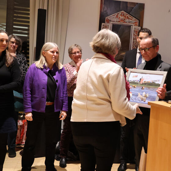 Unter anderem betonte die stellvertretende Regionspräsidentin Ute Lamla die "klare Haltung" der Superintendentin für die Demokratie. Der Region und der Kirche gehe es immer um die Menschen. "Wir ziehen an einem Strang", hob sie hervor. Marlo Kratzke, der Ronnenberger Bürgermeister, meinte, dass Antje Marklein einen "klaren Wertekompass" für die Menschen gehabt habe. Menschen fühlten sich von ihr ernstgenommen. Persönlich erinnerte er an die Feste, wie die Trauung mit seiner Frau und die Taufen der beiden Kinder. "Sie waren herzlich und nahbar und es war echtes Interesse spürbar. Auch deshalb haben sie viel bewegt", sagte er. Mit einem dreifachen "Danke, Antje" ging Superintendent Andreas Brummer aus Laatzen-Springe als Sprecher des Kolleginnen und Kollegen aus dem Sprengel Hannover auf die Aufgaben Antje Markleins im Kindertagesstättenverband Calenberger Land, im Diakonieverband Hannover-Land und als Kollegin im Sprengel ein. "Wir werden dich vermissen als Anker in unserem Kreis", sagte er und überreichte ein "Aktivitätspaket" für den kommenden Ruhestand in Döse bei Cuxhaven.