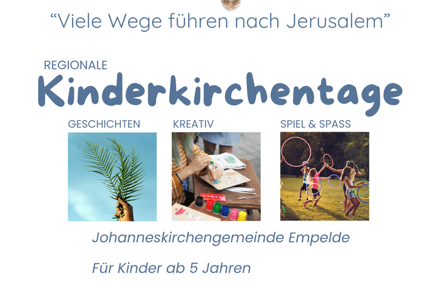 Die Johanneskirchengemeinde Empelde lädt alle Kinder ab fünf Jahren zu den spannenden Kinderkirchentagen ein! Dieses Jahr steht das Thema "Viele Wege führen nach Jerusalem" im Mittelpunkt. An zwei ...