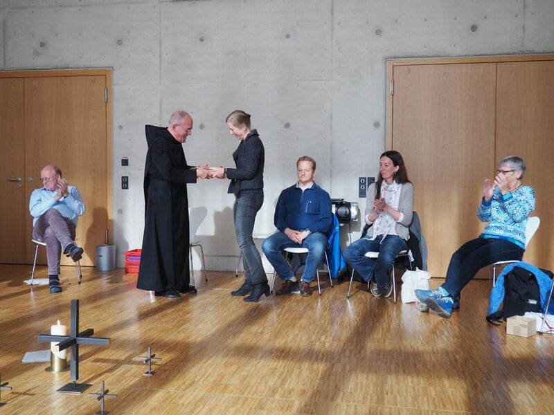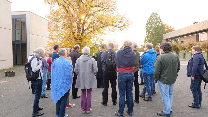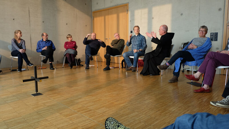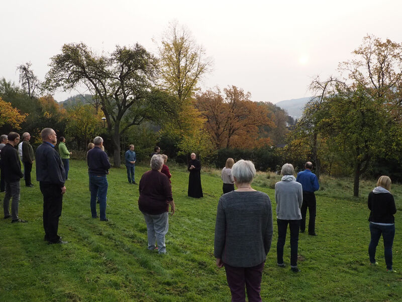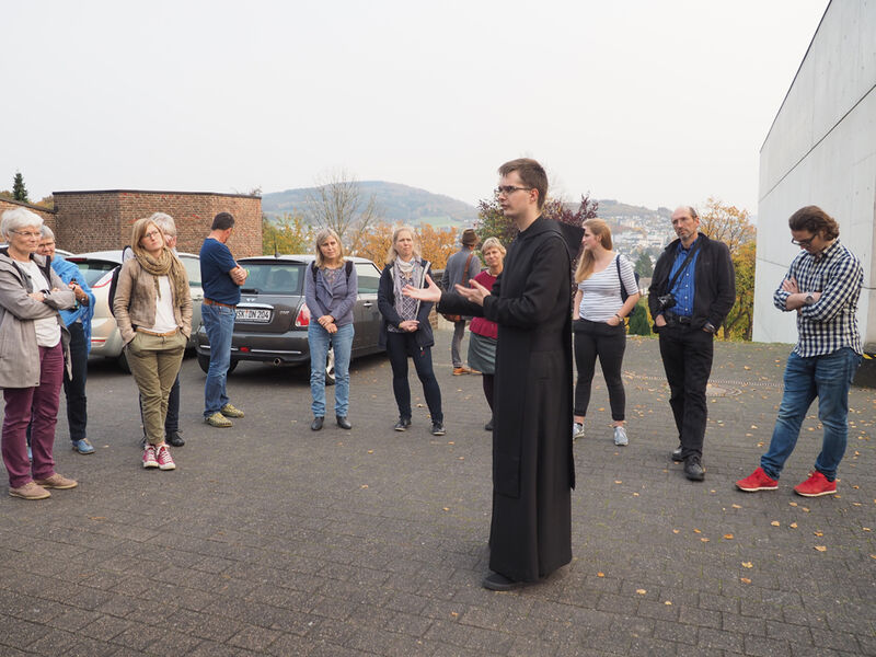 Vier Einkehrtage bei schönstem Herbstwetter in der Benediktinerabtei Königsmünster in Meschede liegen hinter 22 Hauptamtlichen aus dem Kirchenkreis Ronnenberg. Alle zwei Jahre finden diese Klausurtage der Pastorinnen, Pastoren, Diakonen, Diakoninnen und Mitarbeitenden in Beratung und Seelsorge statt. Nach Wittenberg im Oktober 2015 erlebte die Gruppe aus dem Kirchenkreis nun Tage der Ruhe und des Nachdenkens unter der Anleitung von Pater Marian, dem einige der Teilnehmenden bereits auf einer Klausur vor rund 12 Jahren begegnet waren. Im Haus der Stille schlug der Benediktinermönch einen inhaltlichen Bogen über das Logo des Kirchenkreises und dessen Bedeutung, über das Kreuz in dessen Mitte hin zur persönlichen Sicht der Teilnehmenden auf die vertikale und horizontale Achse des Kreuzes. Dabei wechselten sich Phasen von Kleingruppengesprächen und des Zuhörens von Vorträgen Pater Marians ab mit Zeiten des Schweigens. Eine besondere Struktur erhielten die Einkehrtage durch die mögliche Teilnahme der Kirchenkreisgruppe an den verschiedenen Tagesgebeten und an einer Vesper in der Abteikirche. Ausführlich nahm sich auch Bruder Symeon Zeit, um die Gruppe an einem Nachmittag über den Klosterberg zu führen und über die Geschichte der Benediktiner in Meschede zu erzählen.