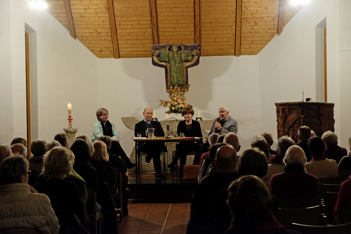 Die Fragen rund um Sterbehilfe in Deutschland, was erlaubt ist und was erlaubt sein sollte, bewegt offenbar auch viele Menschen in Barsinghausen. Mehr als 100 Gäste verfolgten das Gespräch von Anne und Nikolaus Schneider in der Petruskirche am Montag, 25. November. Moderiert durch Heinz-Jürgen Görtz, katholischer Theologe und früherer Professor an der Universität Hannover, erinnerte das Ehepaar an eine Zeit, als beide öffentlich über ihre jeweilige Haltung zur aktiven Sterbehilfe diskutierten. Vor fünf Jahren erkrankte Anne Schneider an einer aggressiven Form des Brustkrebses. Ihr Mann war zu der Zeit Ratsvorsitzender der Evangelischen Kirche in Deutschland (EKD). Beide positionierten sich damals unterschiedlich – und begründeten ihre Entscheidungen auch jeweils aus ihrem christlichen Glauben. Sie hatte damals den Wunsch, als noch unklar war, ob die Behandlung Erfolg haben würde: „Wenn nichts mehr hilft, will ich in die Schweiz fahren, um dort Sterbehilfe zu erfahren“. Er hätte sie in die Schweiz begleitet, aber lehnt eine gesetzlich geregelte Sterbehilfe ab. Über ihre Diskussionen entstand ein Buch („Vom Leben und Sterben“ – Eine Ehepaar diskutiert über Sterbehilfe, Tod und Ewigkeit, Neukirchner Verlag), aus dem sie zum Ende der Veranstaltung eine kurze Passage lasen. Verändert hätten sich beide Positionen auch in den letzten Jahren nicht, betonten sie. Schon vor ihrer Erkrankung diskutierten sie in der Öffentlichkeit, so beim Kirchentag in Hannover über die Erfahrung auch des Krebstodes ihrer jüngsten Tochter Meike. „Miteinander reden hilft. Es ist eine gewisse Form der Verarbeitung für uns beide. Aber wir sind nicht die Einzigen, es sind vielen, die auch betroffen sind“, betonte Nikolaus Schneider. 2014, vor der Krebsdiagnose seiner Frau, sollten bereits Fragen der Sterbehilfe von der EKD thematisiert werden, weil es gesellschaftspolitisch auf der Tagesordnung stand. Um seine Frau dann während der Erkrankung begleiten zu können, gab er sein Amt als EKD-Vorsitzender auf. „Der Staat soll das Leben grundsätzlich schützen und bewahren. Deshalb muss er Rahmenbedingungen schaffen, in dem auch das Sterben geschützt wird. Das heißt, es sind gute Bedingungen nötig, wie eine gut ausgestattete Palliativmedizin, gute Pflege und ein Wissen um den Umgang mit Sterbenden. Die Würde des Menschen steht an erster Stelle auch im Sterben“, machte Nikolaus Schneider deutlich. Deshalb dürfe der Staat auch keine Regelung treffen, wie Menschen getötet werden. In Ausnahmesituationen und in Barmherzigkeit gegenüber dem Sterbenden könne dessen Sterbenszeit verkürzt werden – ohne, dass anschließend die Ärzte Besuch von der Staatsanwaltschaft erhalten. Für Anne Schneider soll auch der Staat das Leben schützen, es dürfe aber keinen Zwang zu leben geben. In freier Entscheidung müsse ein Mensch seine Sterbensphase verkürzen können. Wichtig ist ihr eine Beratungspflicht von Sterbewilligen. Kein Arzt dürfe zur Sterbehilfe verpflichtet werden. Aber sie wolle, dass es eine rechtliche Freiheit der einzelnen Menschen gäbe, selbstbestimmt zu sterben.