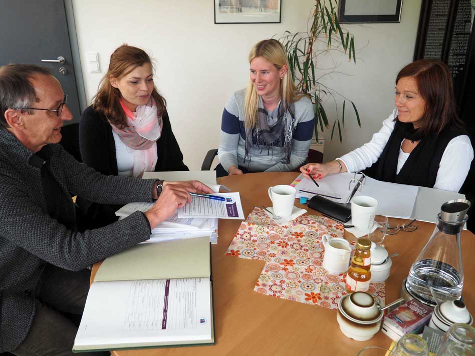 Welche Maßnahmen eignen sich, die Familienorientierung in einem kirchlichen oder diakonischen Betrieb zu stärken? Was brauchen Mitarbeiterinnen und Mitarbeiter in einem Pflegedienst, um „Job und Familie“ gut unter einen Hut zu bekommen? Was in einer kirchlichen Verwaltung? Die Anforderungen sind sehr unterschiedlich. Und deshalb läuft zurzeit ein bundesweites Pilotprojekt in Kirche und Diakonie mit 20 Einrichtungen. Das Kirchenkreisamt Ronnenberg ist dabei als ein Beispiel für eine kirchliche Verwaltung. Zum Ende der Entwicklungsphase, die bereits seit Herbst 2016 läuft, findet zurzeit die Zertifizierung mit dem „Evangelischen Gütesiegel Familienorientierung“ statt. Im September ist in Berlin die Übergabe der Zertifikate an die beteiligten Einrichtungen geplant. Am Montag, 6. Mai, prüfte die Auditorin Silvia Mahle die geplanten Maßnahmen und bereits umgesetzten Ideen vor Ort im Kirchenkreisamt. Eine Arbeitsgruppe, bestehend aus dem Leiter des Kirchenkreisamtes Joachim Richter, der Leiterin der Personalabteilung Mirja Knolle und Lissa Bartram für die Mitarbeitendenvertretung des Kirchenkreises, organisiert den laufenden Zertifizierungsprozess.