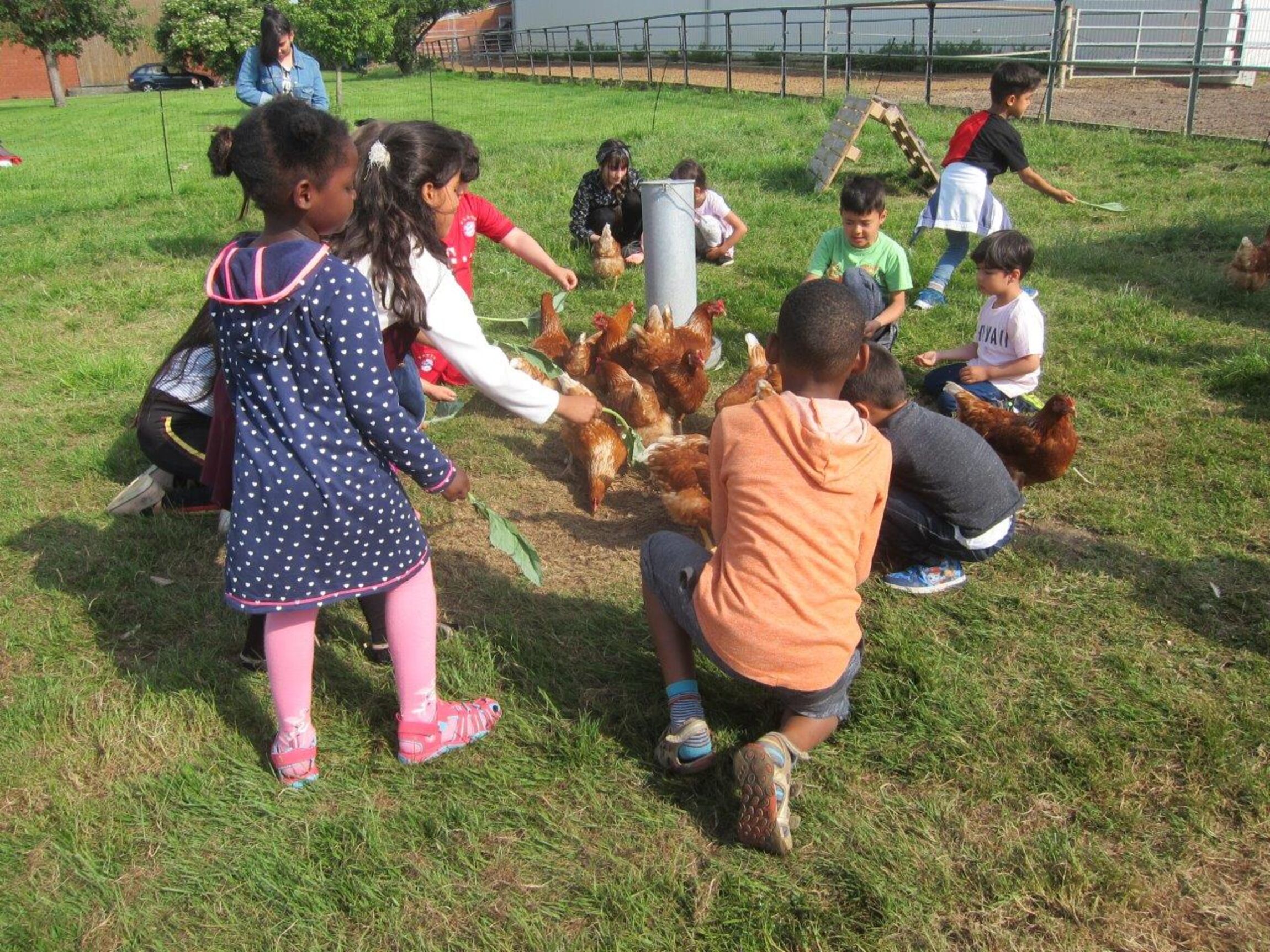 An einem Schaukasten konnten die Kinder das Treiben in einem Bienenstock sehen, sahen die Arbeitsaufteilung, wunderten sich, dass es zwar eine Königin, aber keinen König gibt, die männlichen Bienen aus unbefruchteten Eiern entstehen, wie fleißig die Arbeiterinnen sind und dass die Königin zu Spitzenzeiten bis zu 2.400 Eier pro Tag legt.