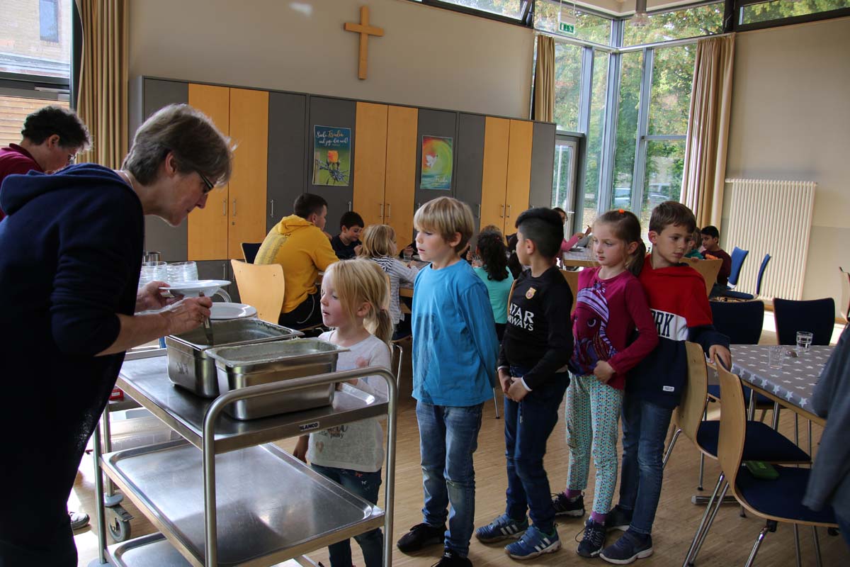 "Mit oder ohne Würstchen?" - diese Frage stellte Superintendentin Antje Marklein rund 30 Mal am Donnerstagmittag im Gemeindesaal. Es gab Suppe, als Nachtisch Schokopudding. "Die Suppe ist nicht so beliebt bei den Kindern, aber wir ermutigen sie, wenigstens zu probieren", meinte Melanie Günther, die pädagogische Leiterin der Kinderkantine. Allerdings holten sich etliche Kinder nach einer kleinen Probierportion gern einen Nachschlag aus dem großen Topf. Auf den Tischen standen außerdem kleingeschnittene Äpfel. "Wir freuen uns sehr über unsere Unterstützer, die Geld spenden. Aber eine Frau aus Gehrden, Ingrid Winter, versorgt uns wöchentlich mit einer besonderen Spende. Sie bringt montags Obst für eine Woche. Sie wollte sich gern engagieren und sorgt jetzt dafür, dass wir jeden Tag Obst anbieten können", freute sich Melanie Günther. Während die Kinder noch aßen, trafen bereits die Ehrenamtlichen ein, die die Hausaufgaben der Grundschulkinder betreuen. Und Antje Marklein lud später noch ins Meriba zum Basteln ein. "Bügelperlen zum Runterkommen", wie sie sagte.