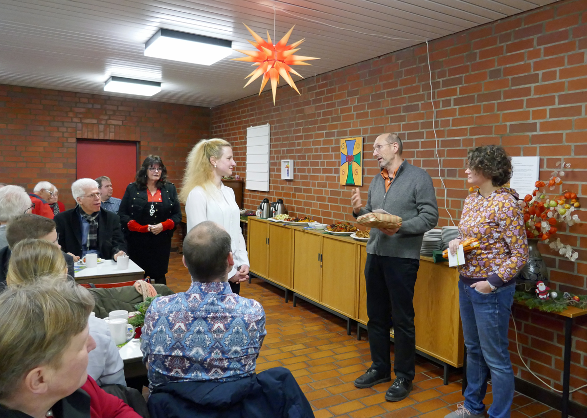 Auf "viele Begegnungen" freut sich Diakonin Katja Strelow in den nächsten Monaten. Sie ist seit einem Monat als Elternzeitvertretung in der Region Ronnenberg tätig. Am 3. Adventssonntag wurde sie nun vom stellvertretenden Superintendenten Günter Koschel im ökumensichen Gottesdienst in der Versöhnungskirche in Weetzen in ihren Dienst eingeführt. Anwesende Kolleginnen und Kollegen aus dem Kirchenkreis bildeten einen Segenskreis, um ihr den Rücken symbolisch zu stärken. "Ich freue mich sehr über die freundliche Aufnahmen in den acht Orten, die zur Region Ronnenberg gehören. Die ersten Treffen mit den Kindergottesdienstteams und anderen Gruppen haben bereits stattgefunden. Meine Freude über diesen Dienst möchte ich gern an Kinder, Familien und Ehrenamtliche weitergeben", sagte die Diakonin im Gottesdienst. Nach dem Gottesdienst, der durch drei Lieder des Vokalensemble Lincanto festlich geprägt wurde, konnten Gäste Glückwünsche an Katja Strelow weitergeben. Diakon Martin Wulf-Wagner und seine Kollegin Anja Marquardt richteten Grüße der Berufsgruppe aus. Er erinnerte an viele Begegnungen mit Katja Strelow, die in Wennigsen aufgewachsen ist. So fuhr sie schon als Kind mit auf die beliebten Kinderfreizeiten der Region Gehrden-Wennigsen, später absolvierte sie Praktika in Wennigsen und vertrat Martin Wulf-Wagner während eines Studiensemesters. Er begrüße es nun sehr, dass sie nach den ersten Berufsjahren im Kirchenkreis Hildesheimer Land-Alfeld in den Kirchenkreis Ronnenberg gewechselt sei. Der Schwerpunkt von Katja Strelow wird in der Region Ronnenberg, zu der die Gemeinden Empelde, Weetzen und Ronnenberg, die Johannes-der-Täufer-Gemeinde Wettbergen und die Kapellengemeinden Linderte und Ihme-Roloven gehören, in der Arbeit mit Kindern und Familien liegen.
