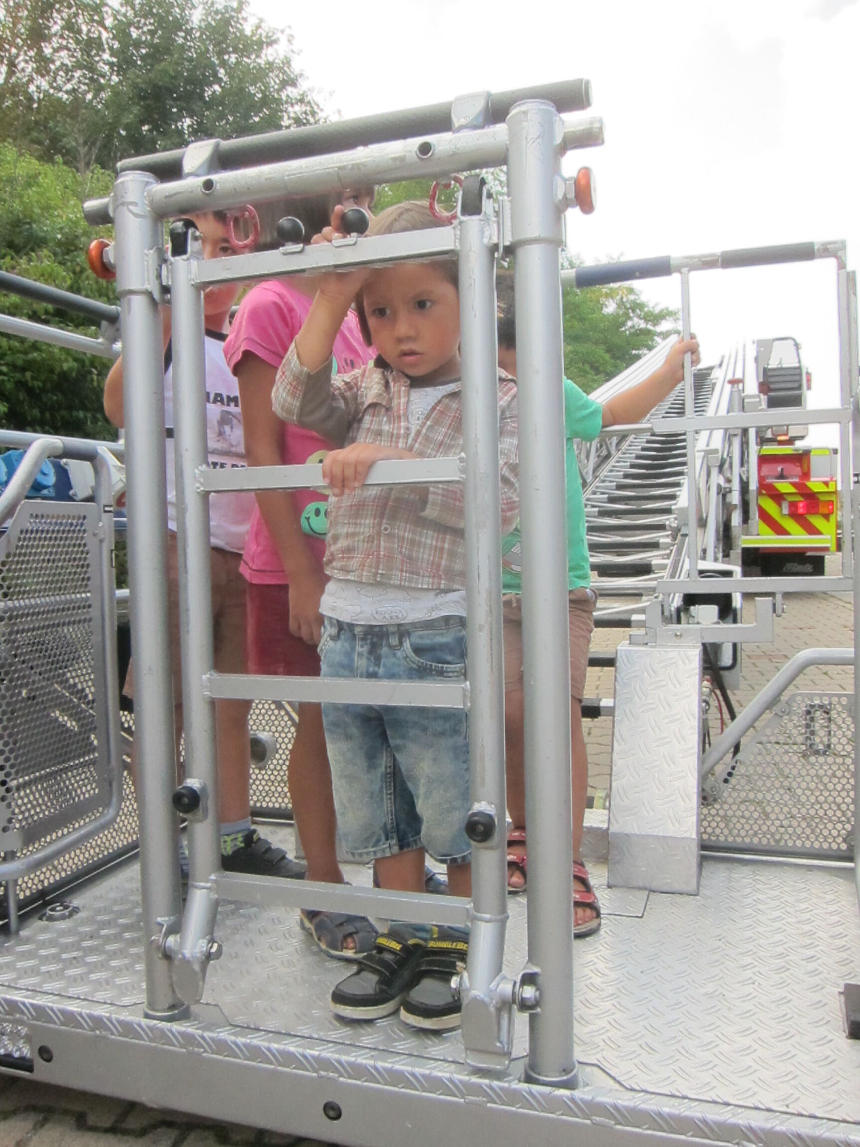 Mit 28 Kindern im Alter von zwei bis 13 Jahren und 16 interessierten Erwachsenen haben die Betreuerinnen des Willkommenskreises der Mariengemeinde „Willkommen in Basche“ die Feuerwehr Barsinghausen in der Egestorfer Straße besucht. Der stellvertretende Ortsbrandmeister Philipp Lattmann und sein Team standen den Besuchern für alle Fragen zur Verfügung. In Kleingruppen konnten Klein und Groß die Ausrüstung und Fahrzeuge bewundern und sogar einiges ausprobieren. Die Ortsfeuerwehr Barsinghausen mit ihren etwa 70 aktiven ehrenamtlichen Kameradinnen und Kameraden hat derzeit acht Fahrzeuge im Einsatz. Zu den Tätigkeiten gehört die Brandbekämpfung, die technische Hilfeleistung von der Türöffnung, Sturmschäden bis zu Verkehrsunfällen, Gefahrguteinsätze, die Menschenrettung, Hilfe bei Personensuchen und vieles mehr. Für die Besucher war es aufregend in den Fahrzeugen zu sitzen und die Rettungsspreizer – und scheren zu bedienen. Beim Drehleiterfahrzeug konnten die Besucher in den Rettungskorb einsteigen.