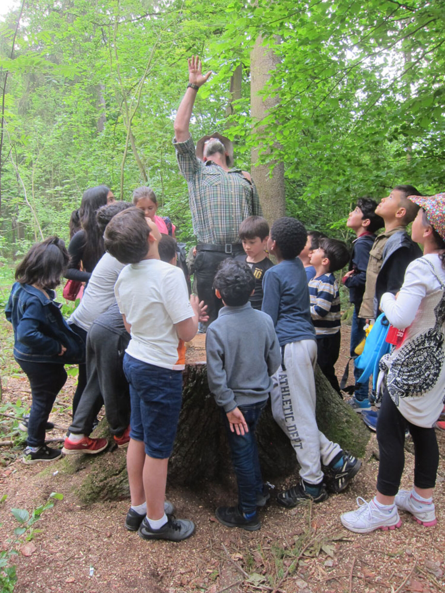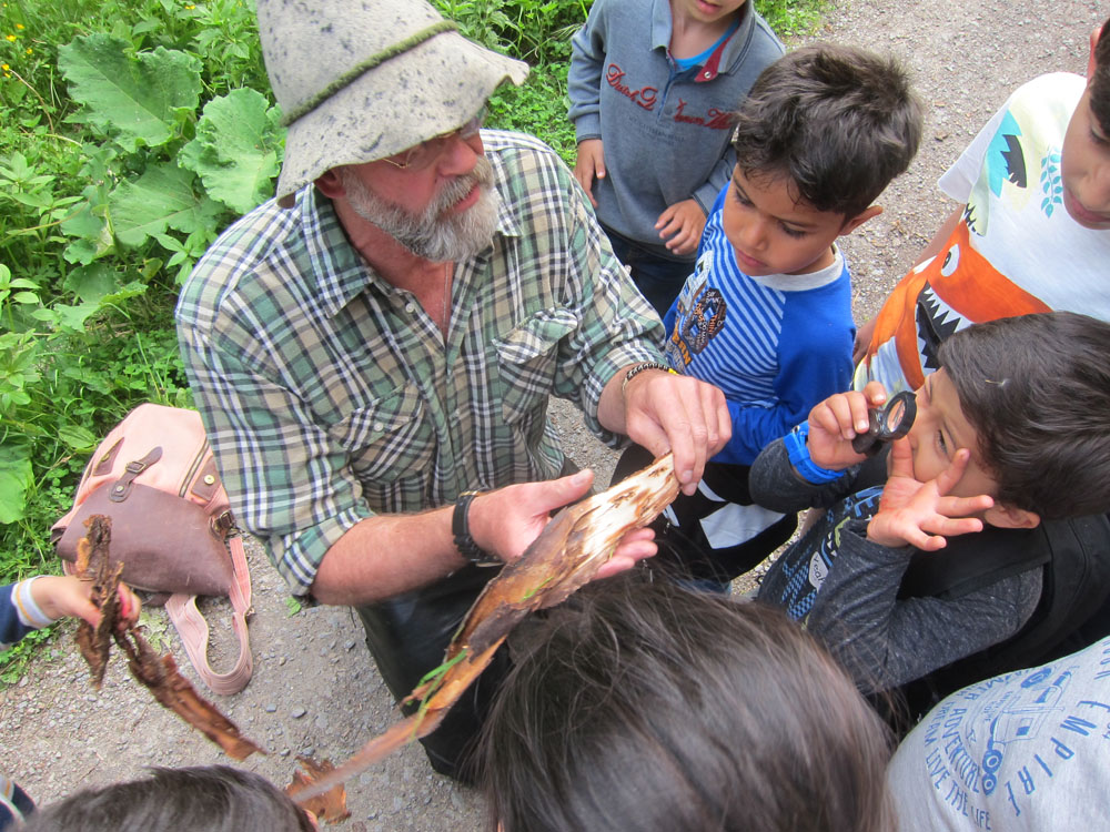 Eine bunt gemischte Gruppe von 19 Kindern im Alter von vier bis elf Jahren hat sich gemeinsam mit dem Förster Bert Staritz aufgemacht, den Wald zu erkunden. Es gab jede Menge Dinge zu untersuchen: den Saft von Douglasien, Käfer, Würmer, Holz und Pflanzen. Die Kinder lernten giftige und essbare Pflanzen kennen, wie zum Beispiel Goldregen und Sauerklee. Alle konnten sich nach Herzenslust austoben und klettern. Ständig gab es etwas Neues zu entdecken. Sie lernten, dass Holz aus Cellulose und Lignin besteht. Bei einer Quelle wurde ein Picknick angerichtet, und alle konnten sich selbst mit frischem Wasser versorgen. Für jeden mal ein ganz interessantes Erlebnis, wie gut und erfrischend Quellwasser schmeckt.