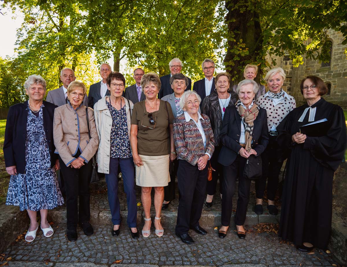 Am Sonntag, 22.September gab es frohes Wiedersehen unter den Jubilarinnen und Jubilaren, die Diamantene und Eiserne Konfirmation mit einem Festgottesdienst unter der Leitung von Pastorin Klies in der Michaeliskirche feierten. Das traumhafte Spätsommerwetter bot einen passenden Rahmen für dieses besondere Ereignis nach 60 und 65 Jahren der Einsegnung, sogar ein Gnaden-Konfirmand (nach 70 Jahren) hatte sich miteingeladen. Die Stimmung war gelöst und heiter, sowohl im Gottesdienst, der eine ganz eigene feierliche Note erhielt durch die musikalische Mitgestaltung des „Chor Cantate“ unter der Leitung von Herrn Egbert Rosenplänter, als auch im Anschluss mit Fortsetzung der Feier bei einem gemeinsamen Mittagessen in der Lütt Jever Scheune. Doch – wie sagte es Jubelkonfirmand Herr Hermann Setzepfand so schön - „Nun habe ich Gottes Segen für den Herbst meines Lebens! Das ist für mich der Höhepunkt der Feier, dafür reise ich auch gern aus dem Harz an.“