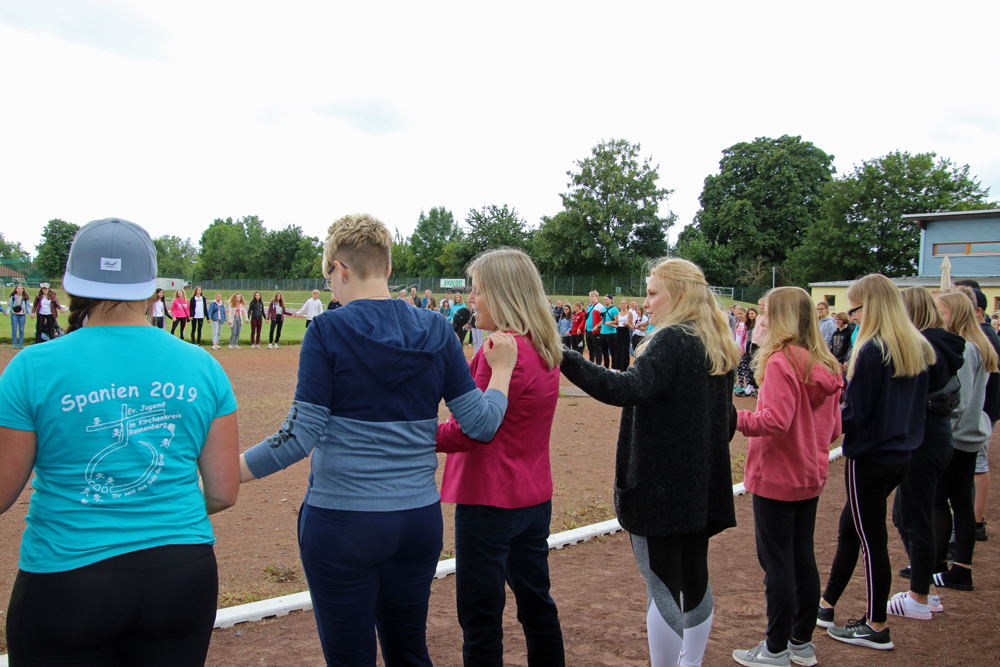 Bei den einen ist es Wiedersehensfreude mit denjenigen, die schon im letzten Jahr mit auf Sommerfreizeit waren, bei den anderen ist es gespannte Neugier, was sie wohl in den kommenden zwei Wochen erwartet. Gemeinsam sind am Sonntag, 7. Juli, rund 130 Personen - Jugendliche, Teamerinnen und Teamer und Hauptamtliche - auf die große Sommerfreizeit der evangelischen Jugend des Kirchenkreises gestartet. Rund 21 Stunden dauerte die Fahrt in zwei Doppeldeckerbussen. In Pineda de Mar, nahe Barcelona, leben sie in drei Zeltlagern nach Altersgruppen aufgeteilt. Es gibt verschiedene Freizeitangebote, Ausflüge und tägliche kreative Bibelarbeiten. Wie in den letzten Jahren üblich, stand ein Reisesegen auf dem nahen Sportplatz am Abfahrtsort in Gehrden am Beginn der Reise. In diesem Jahr war erstmals Pastorin Uta Junginger dabei, die als Kirchenkreisjugendpastorin und künftige stellvertretende Superintendentin im Beisein vieler Eltern, die Fahrt der Jugendlichen unter den Segen Gottes stellte.