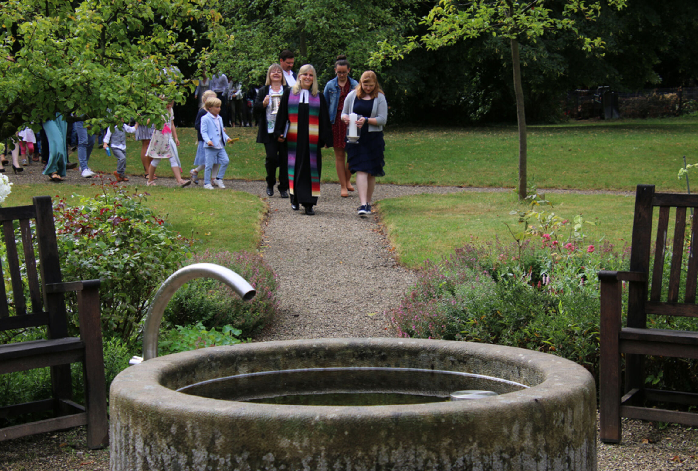 In der Taufkapelle und unter freiem Himmel im sogenannten Äbtissinengarten und am zentralen Brunnen im Klostergarten wurde schließlich getauft.