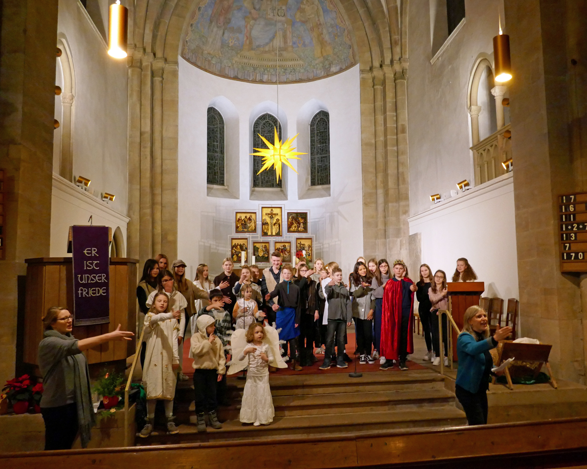 Dreimal ist das Weihnachtsspiel von der Freude im Himmel und im Stall in den kommenden Tagen zu erleben: Am Sonntag, 22. Dezember, 4. Advent, um 10 Uhr, am Heiligen Abend, Dienstag, 24. Dezember, um 14.30 Uhr und um 16 Uhr in der Klosterkirche. Pastorin Uta Junginger und Vikarin Mira Neckel wechseln sich in der liturgischen Leitung ab.