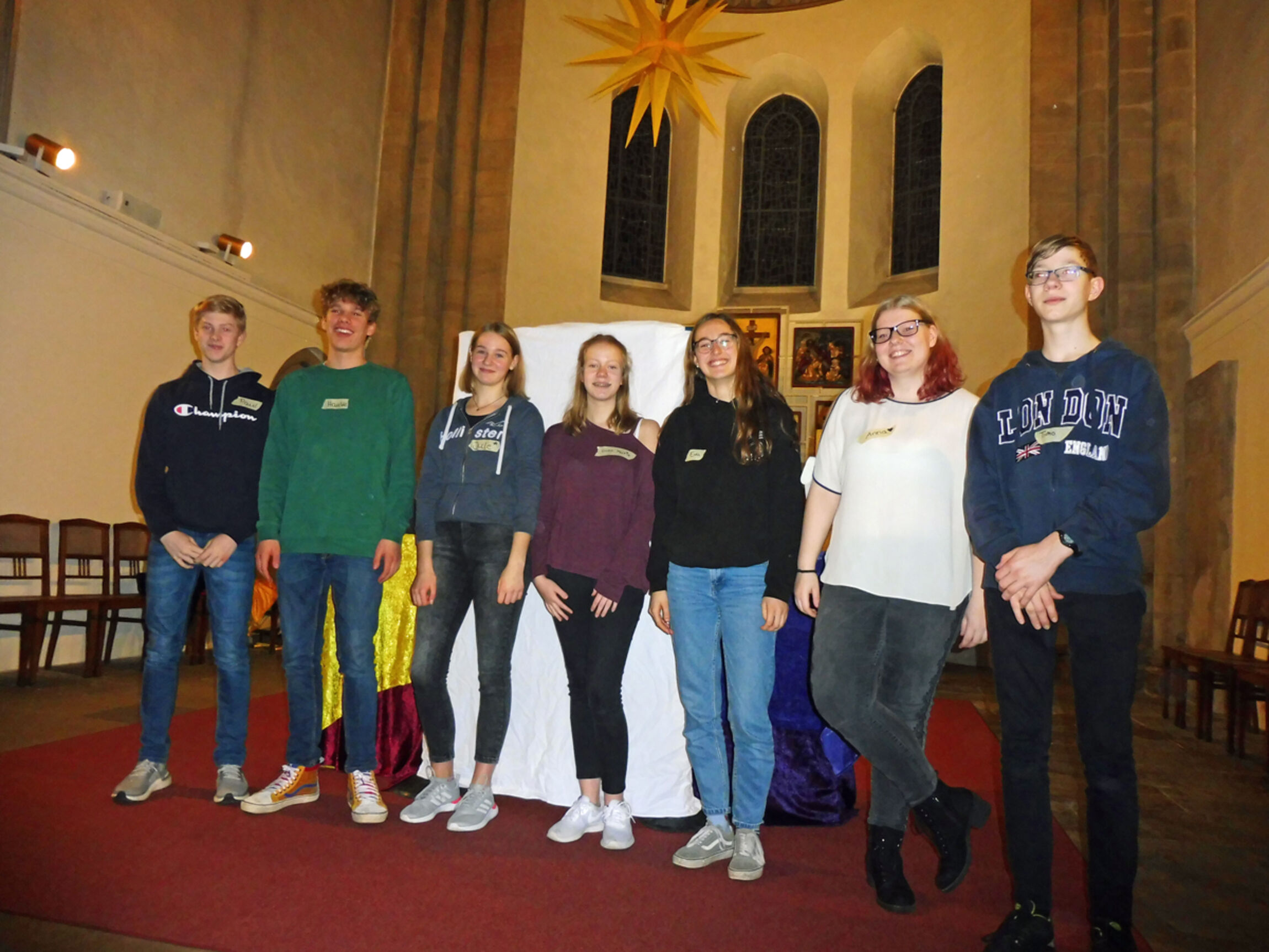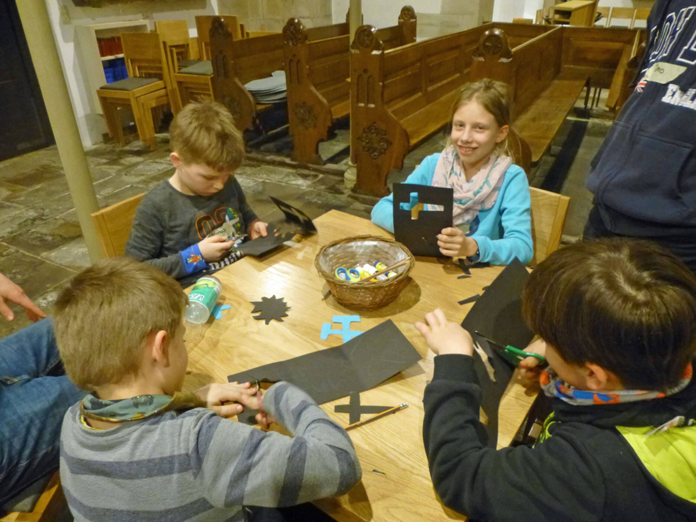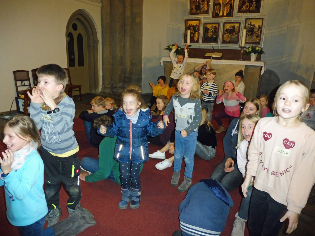 Mehr als 30 Kinder sind begeistert von der ersten Nachtschwärmerkirche im Rahmen der Bunten Tüte, einem Angebot der evangelischen Kirchen der Region Barsinghausen. Erwartungsvoll sind sie am Freitagabend, 17. Januar, in die dunkle Klosterkirche gekommen und sie mussten nicht lagen warten, denn nach der Begrüßung durch Pastorin Uta Junginger und Diakonin Katrin Wolter mit Liedern und einem kleinen Gebet ging es gleich rasant los. In Kleingruppen, die immer von zwei jugendlichen Teamerinnen oder Teamern begleitet wurden, konnten sie die Kirche entdecken. In einem Korb verbargen sich verschiedene Gegenstände, die sie im Kirchraum wiederentdecken konnten. So stellte sich zum Beispiel die Frage, wo sich in der Kirche überall Kreuze oder auch Tauben finden ließen und was sie zu bedeuten haben. Ein weiterer Programmpunkt war die Betrachtung der bunten Fenster zur biblischen Geschichte von Daniel in der Löwengrube in der ganz dunklen Kirche. Das Highlight des Abends war ein von Berufspraktikant im Anerkennungsjahr Jan Lennart Boje entwickeltes und von den Teamern gespieltes Schattentheater von Daniel in der Löwengrube in der mucksmäuschenstillen Klosterkirche. Anschließend gab es ein schmackhaftes Abendbrot mit Würstchen, Fladenbrot, Obst und Gemüse. Nach einer spannenden Fotopirsch wurden zur Erinnerung an die Nachtschwärmerkirche Faltbilder aus Tonkarton mit Transparentpapier gebastelt, so dass sich alle nach dem gemeinsamen Abschluss einig waren: Der Abend war großartig und muss unbedingt bald wiederholt werden. Dies ist möglich und zwar bei der nächsten Nachtschwärmerkirche am Freitag, 17.04. von 18:00-21:00 Uhr in der Christuskirche in Egestorf.