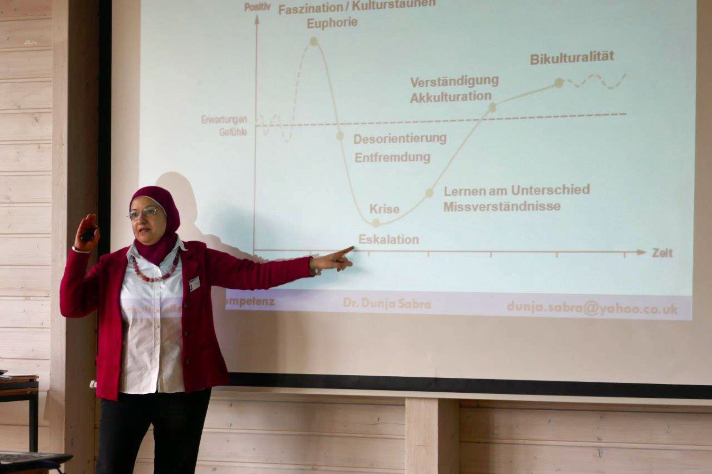 Gute 20 Aktive aus verschiedenen Willkommenskreisen und Vereinen aus Barsinghausen, Wennigsen und Empelde nahmen am Samstag, 29. Februar, an einem Seminartag mit Dr. Dunja Sabra im Gemeindehaus der Mariengemeinde in Barsinghausen teil. Dunja Sabra aus Buxtehude ist seit über zehn Jahren als interkulturelle Trainerin tätig. Eingeladen wurde sie nun von „Willkommen in Basche“ und der Arbeitsstelle für Migration und Integration im Kirchenkreis Ronnenberg. Gefördert wurde die Veranstaltung von der Freiwilligenakademie Niedersachsen. Besonders im Fokus des Vortrags standen Fragen von Erziehung und Familienkonstellationen in Arabisch geprägten Ländern. Dabei machte die Referentin zu Beginn deutlich, dass es neben den "Klischees" und einem vereinfachten schwarz-weißen Blick auf die Fragestellungen immer auch Differenzierungen gibt. "Es gibt nicht 'das' arabische Land oder 'die' Araber. Und natürlich gibt es auch Familien, in denen die Strukturen, die ich schildere, ganz anders sind. Es gibt auch eine Entwicklung, dass es in Großstädten zum Beispiel erste Einrichtungen für alte Menschen gibt, aber das ist nicht die Regel", erklärte sie. Interkulturelle Kompetenz bedeute Verschiedenheiten auszuhalten, eigene Normen infrage zu stellen und sich auch für andere Sprach- und Verhaltensformen zu sensibilisieren. Das sei keine Einbahnstraße. Wichtig sei es, im Gespräch zu sein und auch aufzuklären. „Wenn jemand in ein fremdes Land kommt, sind vielleicht sieben bis zehn Prozent der Kultur offenbar erkennbar. Wie bei einem Eisberg ist das meiste unsichtbar beziehungsweis ist von der einheimischen Bevölkerung von klein auf erlernt und erfahren. Darüber brauchen wir Kommunikation, Erklärungen, damit es nicht zu Konflikten und Missverständnissen kommt“, sagte sie. Deshalb seien die Ehrenamtlichen in der Willkommensarbeit so wichtig und auch Menschen, die schon länger hier leben, aber die Erfahrung der Fremdheit mitbringen. Sie erklärte die Phasen eines Kulturschocks, wenn jemand neu in ein Land komme. Nach der ersten Euphorie folgt die Ernüchterung, eine Verklärung der Heimat, Missverständnisse werden erkannt und wenn es gut läuft, werden die Spielregeln der neuen Kultur erkannt und erlernt. Das dauere unterschiedlich lang – und bedeute oft, dass Kinder in den zugezogenen Familien viel schneller auf dem Weg der Akkulturation sind. Das könne auch zu Spannungen in den Familien führen, wenn sich das traditionelle Verhältnis verändere. Dunja Sabra informierte über Erziehungsstile, die Rolle von Frau und Mann in der Familie, die Bedeutung von Hierarchien, über die Rolle der Gastfreundschaft, über das Zeitverständnis und den Umgang mit Konflikten. „Einiges erklärt sich jetzt auch im Nachhinein besser“, äußerten Teilnehmende nach dem Seminartag und wünschen sich nun eine Vertiefung der Inhalte.