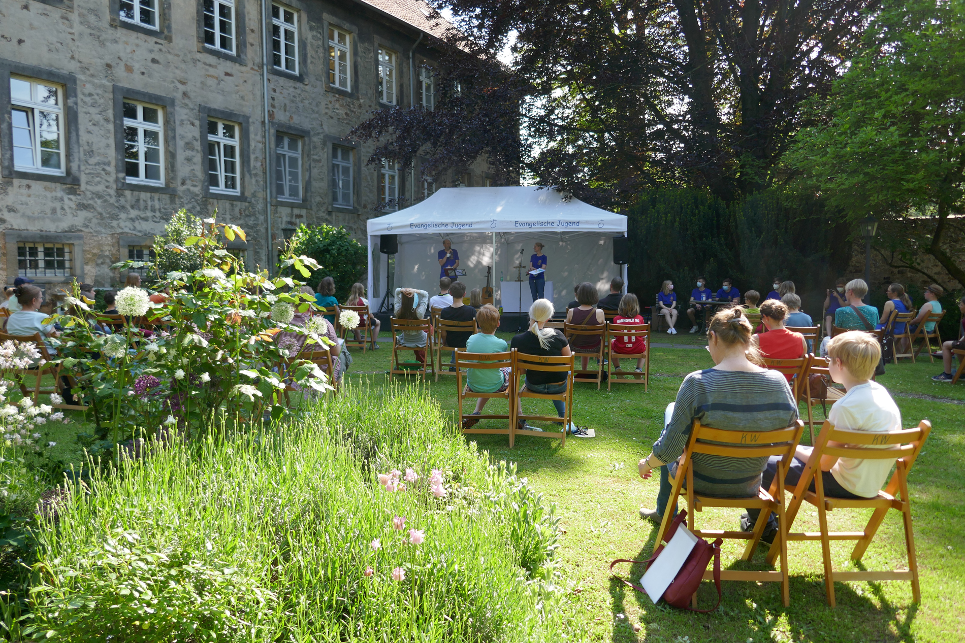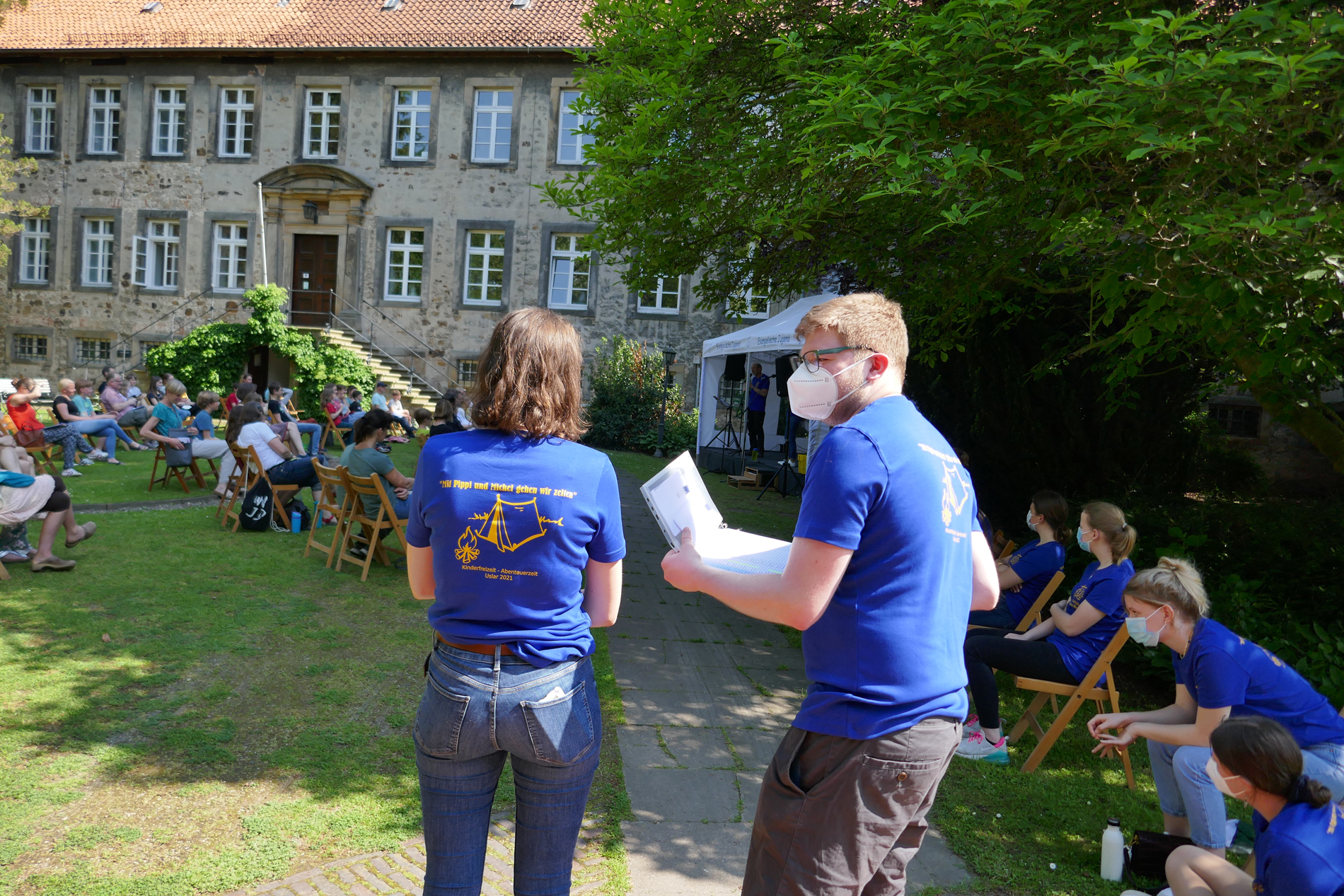Im letzten Jahr musste die Freizeit noch ausfallen - dafür gab es ein Alternativ-Programm. Jetzt freuen sich Kinder und das Team auf die sechs Tage in Uslar. "Es macht Spaß, mit anderen etwas zu unternehmen. Ich freue mich darauf, in der 'Schlucht' zu bauen und auf die Fahrt ins Schwimmbad", sagt der zwölfjährige Mateo aus Bredenbeck, der 2019 mit dabei war. Ebenso wie Tammo, 11, aus Bredenbeck und Jonah, 10, aus Degersen. Tammo gefielen besonders die gute Zeltgemeinschaft und die Abendrunden und Jonah die neuen Kontakte, die geknüpft werden konnten. "Wir sind schon gespannt, wen wir hier kennen und wen wir neu kennenlernen", meinten sie vor dem Infotreffen für Kinder und Eltern. Im Klosterinnenhof in Wennigsen informierten Martin Wulf-Wagner und Katrin Wolter die Eltern über alles Wissenswertes rund um die Freizeit, während sich die Kinder mit den Teamer*innen in Altersgruppe zum ersten Kennenlernen trafen.