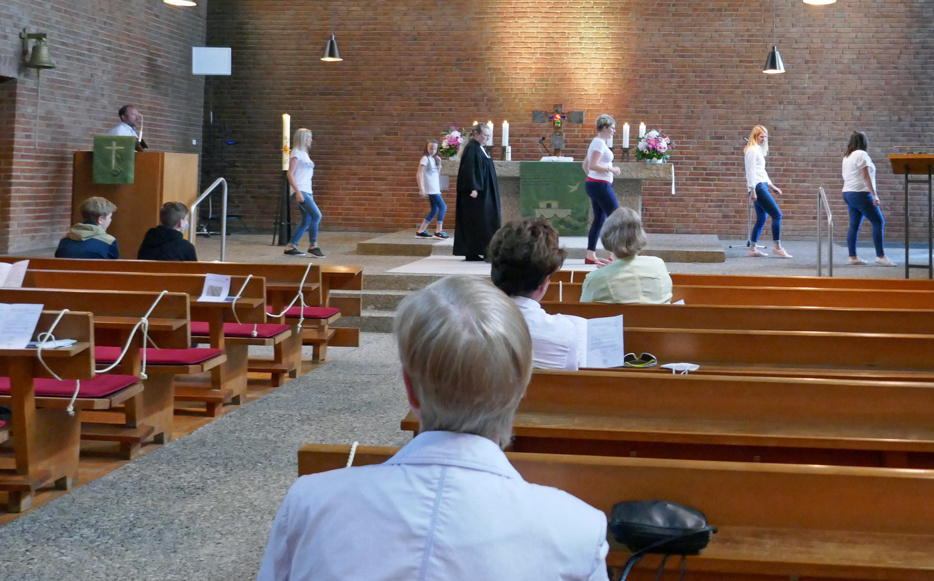 Rote und gelbe Clownsnasen als Mitgebsel am Ausgang, fröhliche Tänzerinnen und Tänzer im Altarraum und auf dem Innenhof der Johanneskirchengemeinde in Empelde, Applaus der Gemeinde - dieser Gottesdienst am Sonntag, 13. Juni, wollte und hat "Gute Laune" bereitet. Zum Abschluss der Visitation durch Superintendentin Antje Marklein predigte Pastorin Martyna Pieczka über die Freude aus dem Glauben an Jesus Christus heraus. "Die gute Laune, die Freude, lässt sich nicht verordnen, aber sie kann wachsen aus der Beziehung zu Gott. Schließlich feiern wir die frohe Botschaft. Wir dürfen uns am Leben erfreuen und miteinander lachen", sagte sie. Auch wenn in der Bibel nur "selten gelacht" werde, so sei sie davon überzeugt, dass Jesus auf seinen langen Wegen mit den Jüngern viel gelacht und auch Witze gemacht habe. Auf den heutigen Gottesdienst habe sie sich besonders gefreut. "Endlich dürfen wir wieder laut singen und auch die Posaunen spielen und wir tanzen".