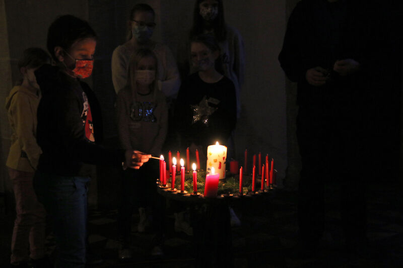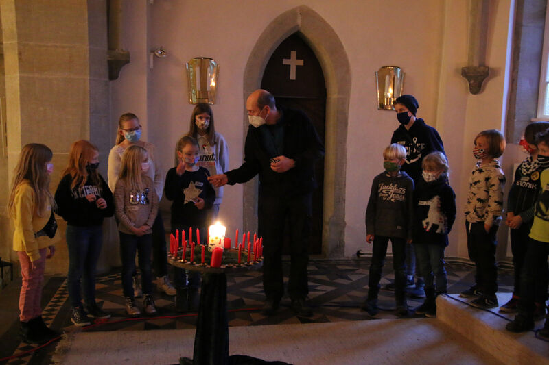 An zwei Nachmittagen verwandelte sich die Holtenser Kirche wieder zu einer gemütlichen Adventsinsel für Kinder. 20 Mädchen und Jungen im Grundschulalter nahmen an jedem der Nachmittage am Weihnachtszauber der Evangelischen Jugend und der Ev.-luth. Kirchengemeinde Holtensen-Bredenbeck teil. Dabei knüpften Diakon Martin Wulf-Wagner und das Team an die Erfahrungen des letzten Jahres an. Die Kinder saßen in vier Kleingruppen in der Kirche und konnten so auch mit Abstand zur ganzen Gruppe die Nachmittage erleben. Diese folgen einem schon traditionellen Ritual: am Anfang werden die Kerzen am Adventskranz entzündet. Die Besonderheit: für jede Kerze der Adventssonntage und jeden Tag im Dezember brennt eine Kerze. Später wird gesungen, gebastelt und eine Pause gemacht. In diesem Jahr standen Weihnachtsbräuche aus anderen Ländern im Mittelpunkt. "Am ersten Nachmittag haben wir zum Beispiel Socken gebastelt, weil wir uns über das Weihnachtsfest in England ausgetauscht haben. Außerdem erzählten wir etwas aus den niederländischen Bräuchen. Und heute ist die Lucia aus Schweden zu Gast", erklärte Martin Wulf-Wagner. Pasend dazu wurden Kerzen verziert.