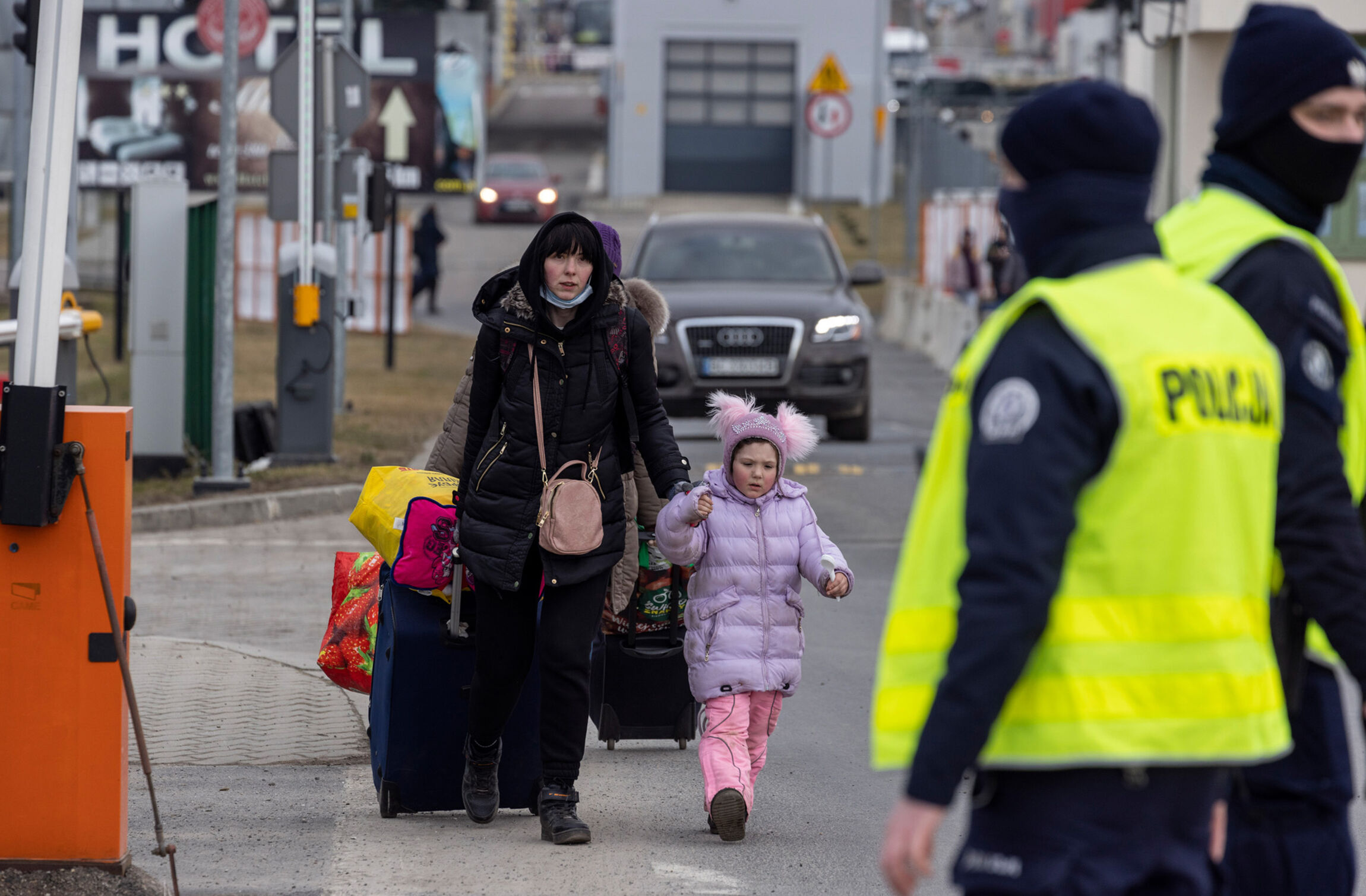 Massive Fluchtbewegungen in die angrenzenden europäischen Nachbarländer haben begonnen. Stündlich steigen die Zahlen der Menschen, die über die Grenzen nach Polen, Rumänien, Ungarn, die Slowakei und die Republik Moldau fliehen. Bislang haben sich rund 400.000 Menschen außer Landes in Sicherheit gebracht, die meisten von ihnen sind Frauen und Kinder. An den Grenzen spielen sich dramatische Szenen ab, denn die Männer müssen zurückbleiben, um das Land zu verteidigen. Mit Zügen und Bussen werden die Flüchtlinge in Großstädte und Sammelunterkünfte weitergeleitet.