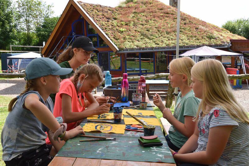 Während der Freizeit verwandelt sich das Gelände mit seinen vielfältigen Spielmöglichkeiten in ein Abenteuerland. Wie ein roter Faden zieht sich das Thema der Freizeit "Völlig losgelöst - den Sternen so nah!" durch das Programm.
