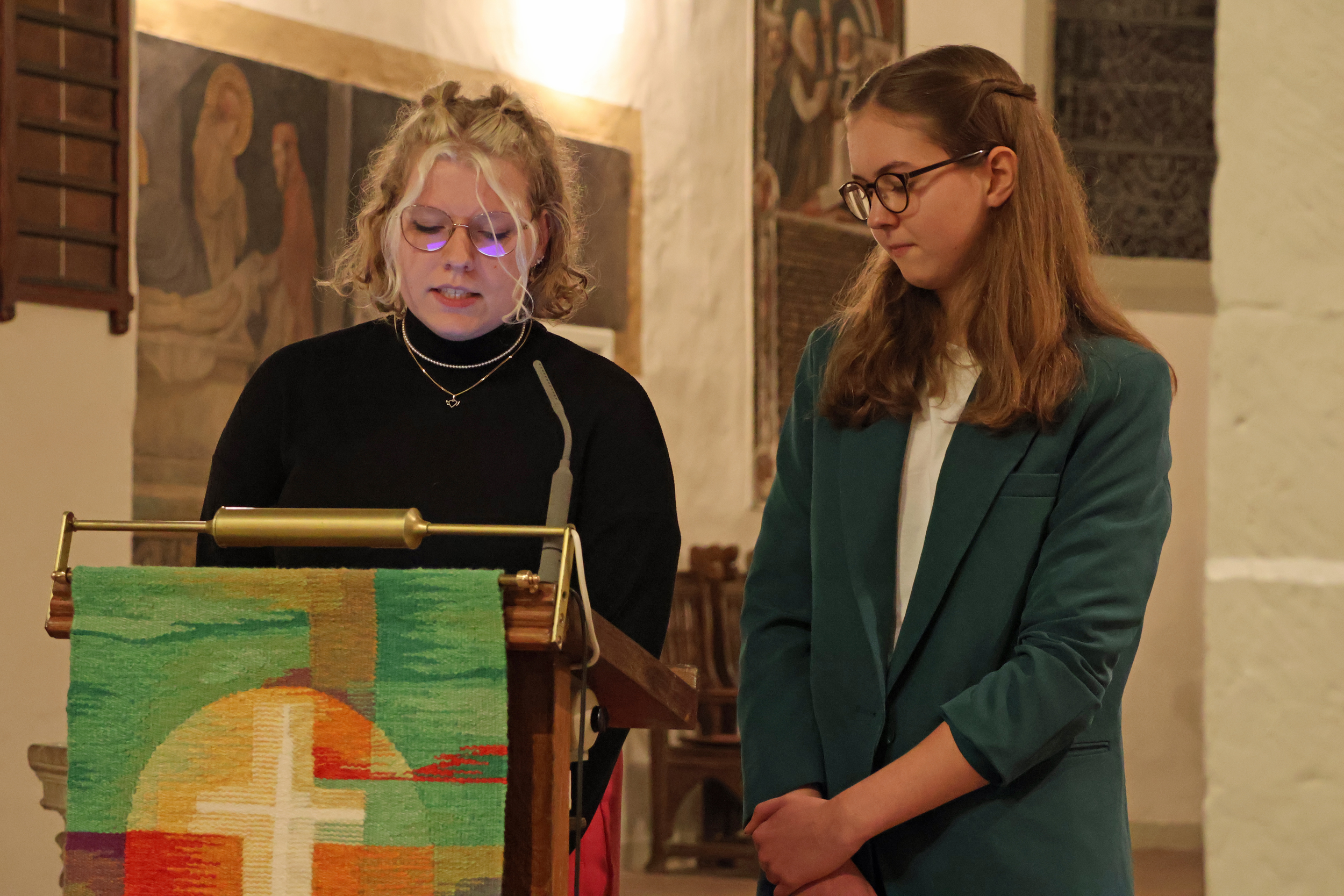 Der Wennigser Bürgermeister Ingo Klokemann sprach über das weit verbreitete Gefühl der politischen Ohnmacht und fehlendes Vertrauen in Institutionen. Zentral sei für ihn, den gesellschaftlichen Zusammenhalt zu stärken. "Politisch selbst aktiv zu sein, das nimmt auch das Gefühl der Ohnmacht. Leider hören wir oft 'was macht ihr da', obwohl wir als Ratsmitglieder ja ein Teil des ‚Wir‘ sind", meinte er. Um den gesellschaftlichen Zusammenhalt zu stärken, wurde in Wennigsen das "Bündnis für Solidarität in Wennigsen" von Kirche, Parteien, der Schule und Jugendparlament gegründet. "Dieses Bündnis steht für Zusammenhalt. Bei allen Unterschieden machen wir deutlich, dass wir das Beste für unseren Ort, unser Land und für die Menschen, die darin leben, erreichen wollen", so der Bürgermeister. Angesichts von Klimakrise und auch der Biodiversitätskrise und einer Generationenungerechtigkeit für seine Schülerinnen und Schüler forderte Dr. Alexander Pleschka vom Hannah-Arendt-Gymnasium in Barsinghausen in seinem Beitrag mehr Demokratie. "Junge Menschen sind aufgrund des Wahlalters und auch des demografischen Wandels politisch unterrepräsentiert. Dies führt zu strukturellen Ungerechtigkeiten", meinte er und warb für politische Bildung, die Menschen ins Handeln bringe. An der Schule könnten Jugendlichen unter dem Nachhaltigkeitsgedanken kreativ neue Ideen entwickeln, die auch in die Familie, in die Gesellschaft hineinwirkten. Über die Aufgaben von Vereinen in der Demokratie dachte der stellvertretende Vorsitzende des TSV Egestorf Karl-Heinz Tiemann in seinem Beitrag nach. Aufgrund dessen kurzfristigen Verhinderung verlas Burkhard Manke vom Kirchenkreisvorstand diesen Impuls. Vereine seien ein Spiegel der Gesellschaft, so dass auch "Rassismus und Diskriminierung im Sport wie in der Gesellschaft immer eine latente Gefahr bleiben werden und wir deshalb nie in unseren Bemühungen nachlassen dürfen, etwas dagegen zu unternehmen", so der Vereinsvertreter. Er warb für Schulungen, für Sensibilisierungs- und Aufklärungsarbeit und auch für deutliche Positionierungen des Vereins in der öffentlichen Wertedarstellung und Durchsetzung von "Spielregeln". Mit ihren Ausführungen beeindruckten Anna Harmsen und Louisa Swinke von der Evangelischen Jugend im Kirchenkreis besonders das Publikum. Sie bezeichneten sich in ihrem Impuls als "privilegiert", weil sie in ihrem Alltag, im Studium, in der Schule, als Teamerinnen in der Evangelischen Jugend mitgestalten können. "Auch wir haben Ängste und Sorgen angesichts der ungewissen Zukunft und der unsicheren Gegenwart. Aber uns hilft die Gemeinschaft, die wir um uns haben. Und gleichzeitig sehen wir, wie viele Jugendliche sich abgehängt fühlen und frustriert sind", meinten beide und plädierten dafür, aktiv für die Gesellschaft einzutreten - egal in welchem Alter. Denn: "Das Vorbildsein beginnt bei mir selbst". Den fünften Impuls des Abends gaben Sybille Busse und Ingo Arlt von „Barsinghausen ist bunt e.V.“. Sie erinnerten an die Gründung des Bündnisses, als im Stadtgebiet die „Demokratiefeinde erkennbar waren und auch beim Namen genannt werden konnten“. So lud das Bündnis zu ersten Informationsveranstaltungen ein und rief zu Kundgebungen auf, als im Januar 2016 eine im Bau befindliche Flüchtlingsunterkunft brannte oder die AfD in Barsinghausen tagte. „Letztlich arbeiten wir so bis heute. Wir befassen uns mit den aktuellen Fragen zu Themen der Demokratie, organisieren Informationen und wenn es die Situation erfordert, gehen wir auf die Straße“, so Sybille Busse.