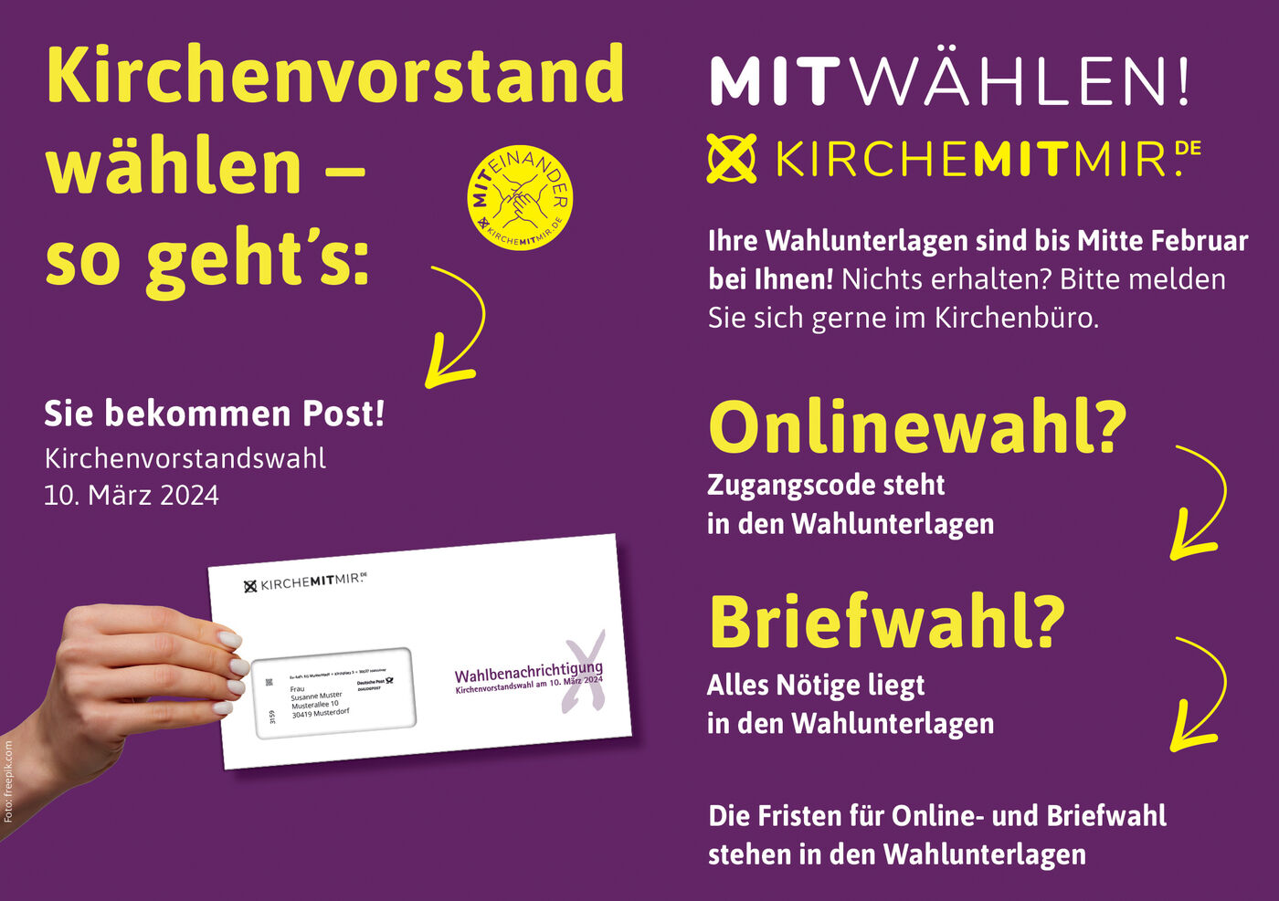 Die KV-Wahlen finden bald statt - mit dieser Nachricht trage ich Eulen nach Athen... Aber trotzdem nochmal der kurze Hinweis, weil ja doch einiges neu ist bei dieser Wahl. Alle Kirchenmitglieder bekommen die Wahlunterlagen per Post bis Mitte Februar nach Hause gesendet. Darin sind dann alle wichtigen Infos zur Briefwahl oder zur Online-Wahl und zusätzlich zur Urnenwahl, dort, wo der KV dies beschlossen hat. In Wennigsen und Empelde findet keine Wahl statt, hier kommt also kein Wahlbrief!