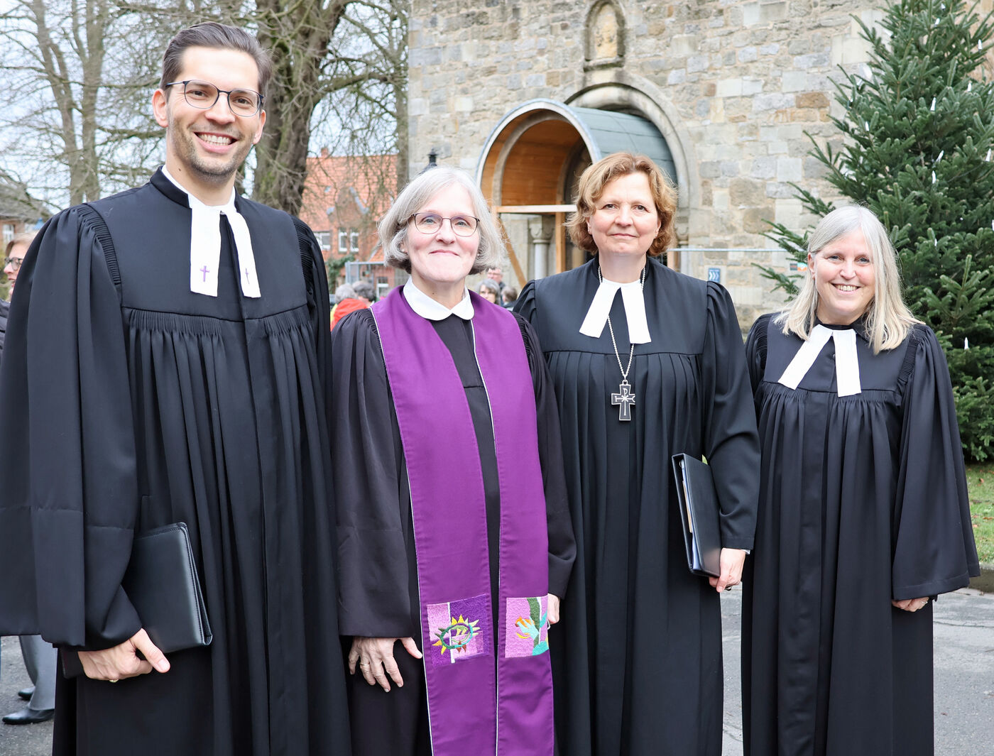 Vor dem Gottesdienst: Johannes Hagenah, stellvertretender Superintendent, Superintendentin Antje Marklein, Regionalbischöfin Sabine Schiermeyer und die stellvertretende Superintendentin Uta Junginger.
