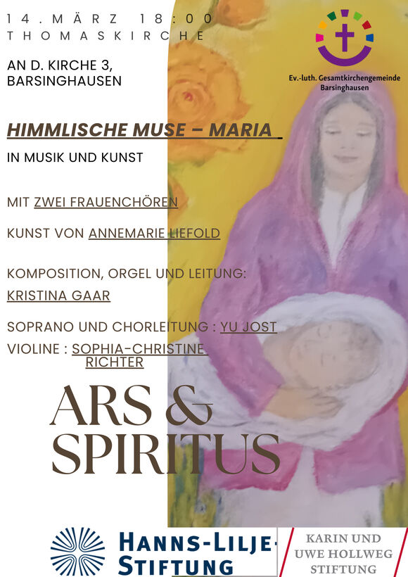 Unter diesem Titel findet am Samstag, 14. März, 18 Uhr in der Thomaskirche Hohenbostel ein besonderes geistliches Konzert statt. Es eröffnet die neue Reihe „Ars et Spiritus“. Erstmals musizieren der Frauenchor „Euterpe“ aus Hannover und der Kirchenchor der Kirchengemeinde Bördedörfer gemeinsam. Zur Aufführung kommt das neu komponierte Ave Maria für Orgel, Frauenchor und Violine von Kristina Gaar (2025). An der Violine: Sophie-Christine Richter. Der Gesang steht im Dialog mit einem eigens für dieses Projekt geschaffenen Gemälde der Künstlerin Annemarie Liefold.